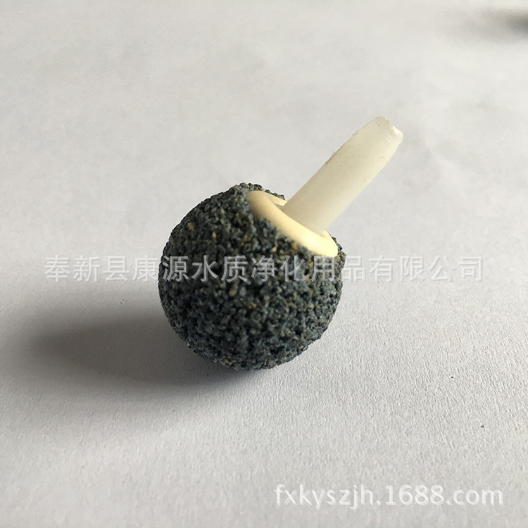 气泡石俗称散气石(沙头)、曝气器。英文品名为:airstone,采用优质原料白刚玉、棕刚玉,通过高温烧结(1300摄氏度),坚固耐用,散气性好,过滤性强。气泡石种类:棕刚玉气泡石、白刚玉气泡石、碳化硅气泡石、矿砂气泡石、树脂气泡石、塑料气泡石、木制气泡石等,不同材料的气泡石,制作工艺亦不同。诸如,树脂气泡石采用粘连手段,粘贴而成,寿命比烧制的短,价格低廉。矿砂气泡石采用胶水粘结而成,相对于白刚玉、碳化硅,稍逊一些。塑料气泡石,故名思议,采用塑料制作而成,轻巧简便,可弯曲成任意形状,使得产生的气泡在水中呈现别样的风采,但其本体重量太轻导致本身不能沉底。木制气泡石,容易吸收水体中的水分,木制品短期泡于水中能够防止腐烂,但是长期泡在水中,由于木头吸收水中的水分,从而使得木头膨胀变大,慢慢的底部开始烂,接着一点一点沉,一点一点烂,其使用寿命也不敌白刚玉、棕刚玉气泡石。