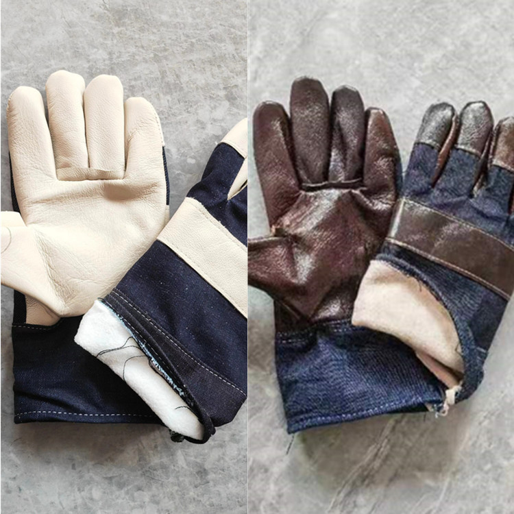 此类手套为做家具的真皮边角料回收加工而成的,因为颜色比较多样,比较杂,只能分为深色和浅色两大类,张副大的会加工成司机款、全皮款、全掌款等,张副小的会加工成驳掌款、分掌款等,配不齐色的只能做杂色手套。