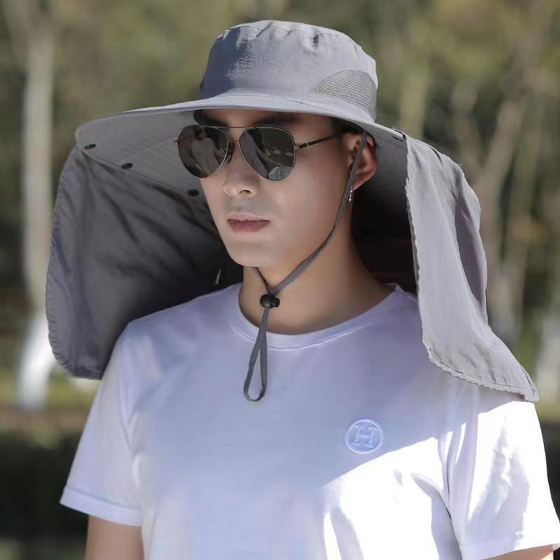 모자 남자 여름 야외 낚시 마스크 어부 모자 낚시 큰 모자 챙 태양 모자 등산 태양 모자