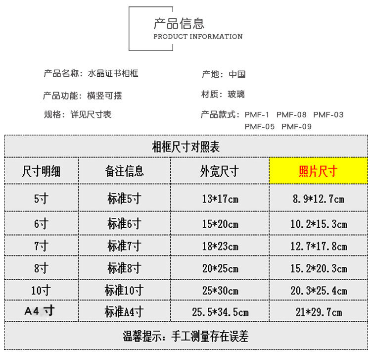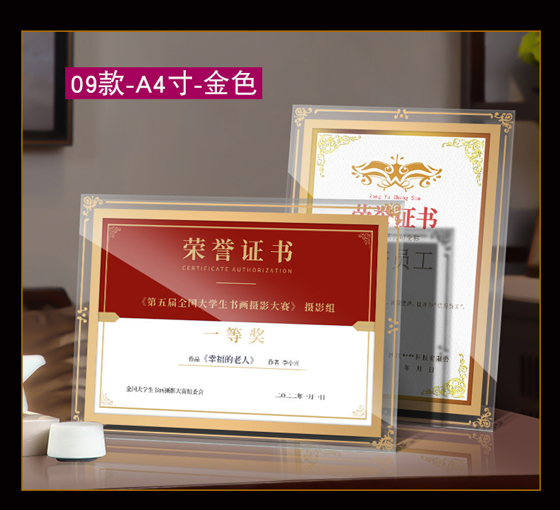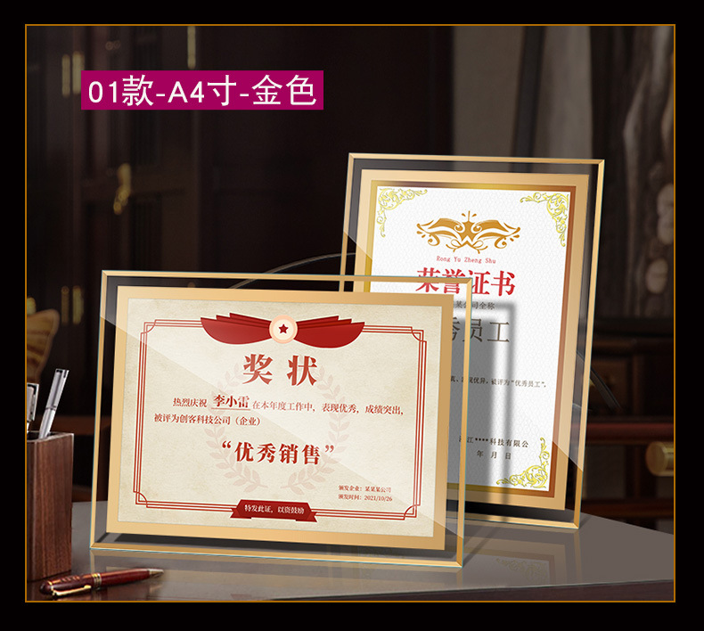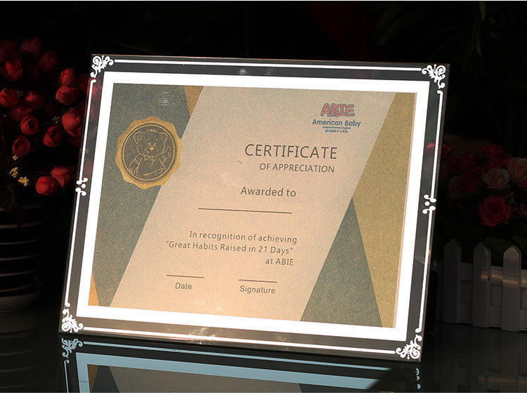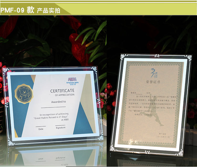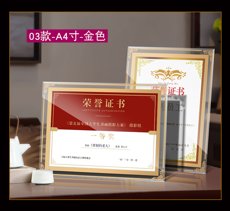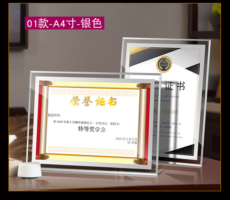 인증서 디스플레이 프레임 유리 명예 인증서 프레임 크리스탈 인증서 액자 프레임 a 4inch 테이블 사진 프레임 도매 액자스토어 가기