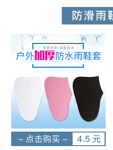 【特点】:松紧束口,贴身不易脱落,防滑耐磨,防水护鞋,防雪,防尘,可折叠,方便携带,不占空间,易清洗,清水冲洗即可,适用于雨雪天行走,骑行,保护鞋子免遭雨水,泥浆溅污,还适用于外出旅游,登山等穿着,以及市政工程,食品,化工业等防水,防尘,防污的地方,是必备精品,环保耐用。可长期使用,非一次性产品。