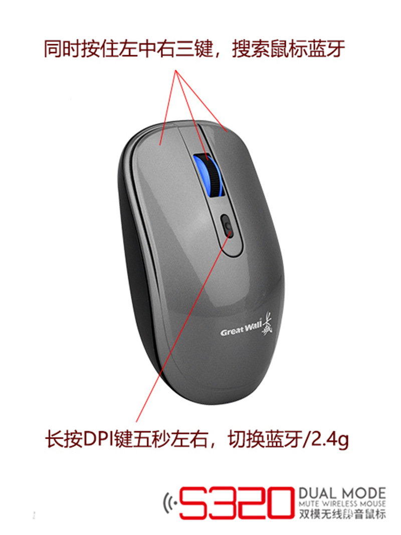 • 만리장성 S320 블루투스 2.4G 듀얼 모드 아이언 그레이