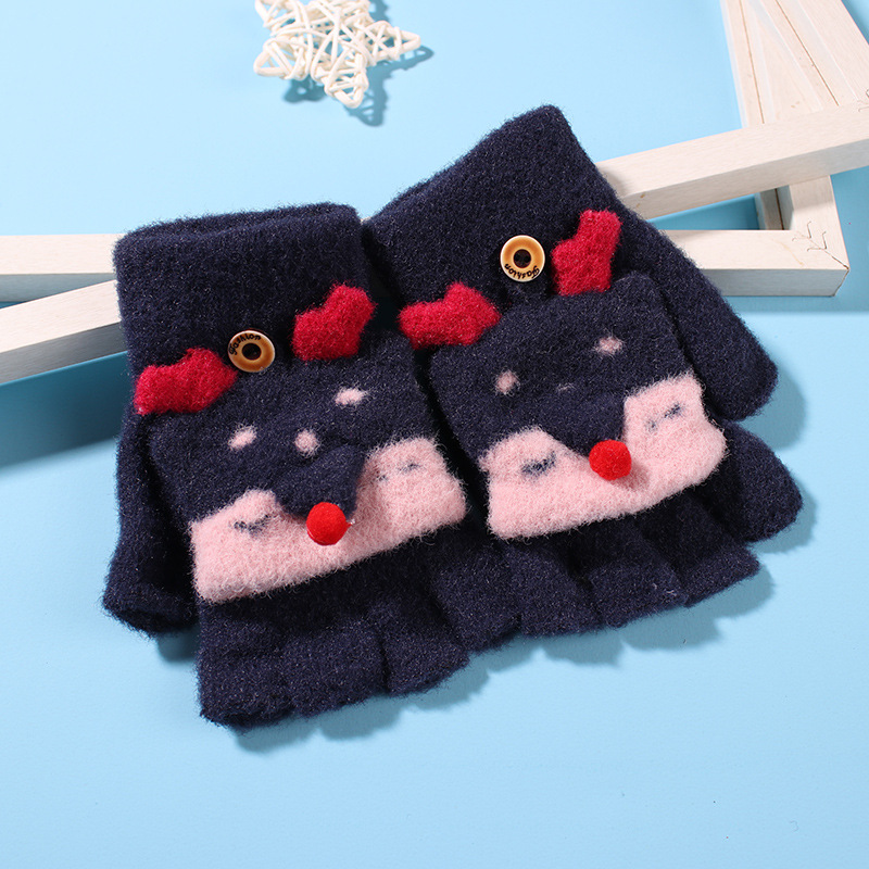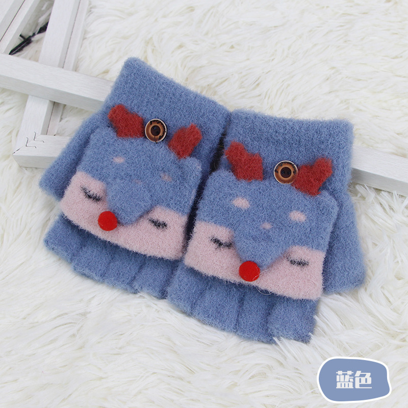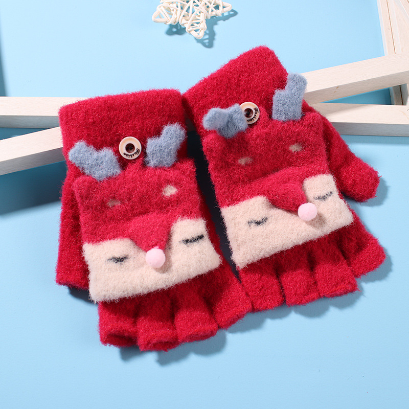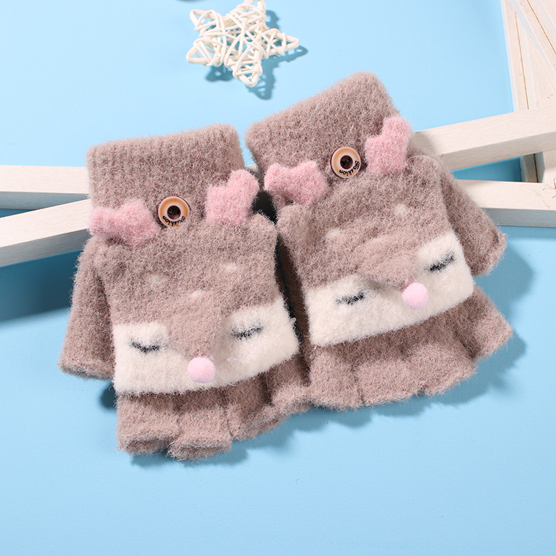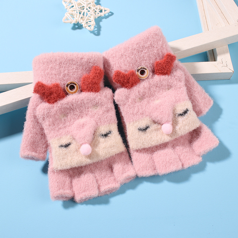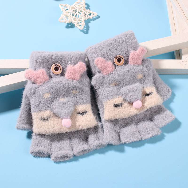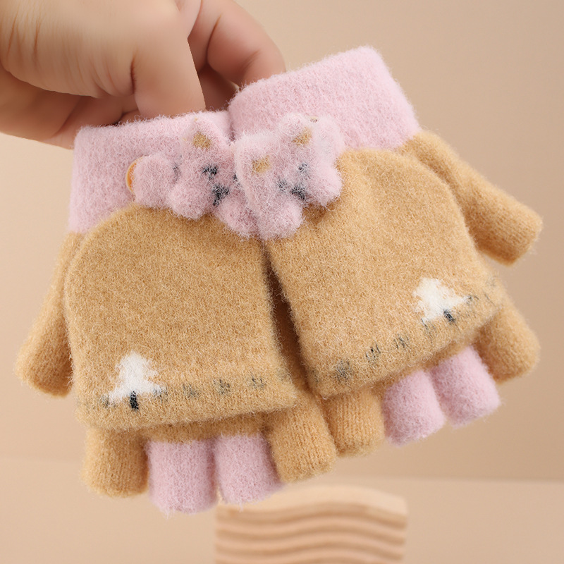 어린이 장갑 겨울 소녀 따뜻한 반 손가락 플립 커버 이중 목적 두꺼운 귀여운 토끼 반 손가락 장갑 소년 및 초등학생 용 장갑