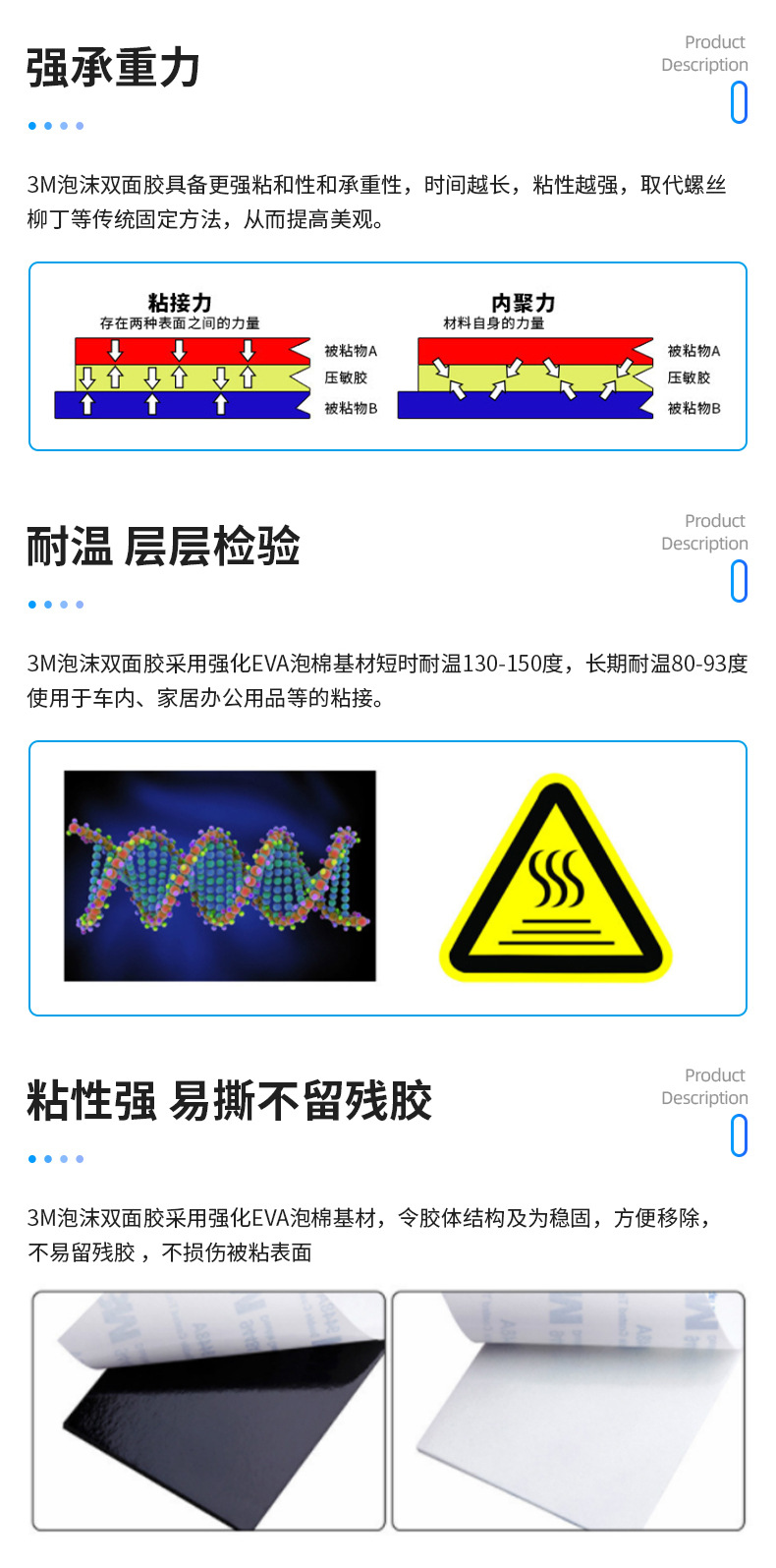 3m9448a 양면 접착 폼 테이프 높은 점도 다이 커팅 후크 자동차 장식품 강한 두꺼운 EVA 접착제