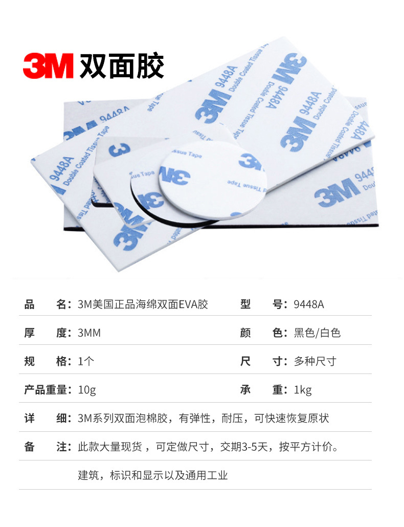 3m9448a 양면 접착 폼 테이프 높은 점도 다이 커팅 후크 자동차 장식품 강한 두꺼운 EVA 접착제스토어 가기