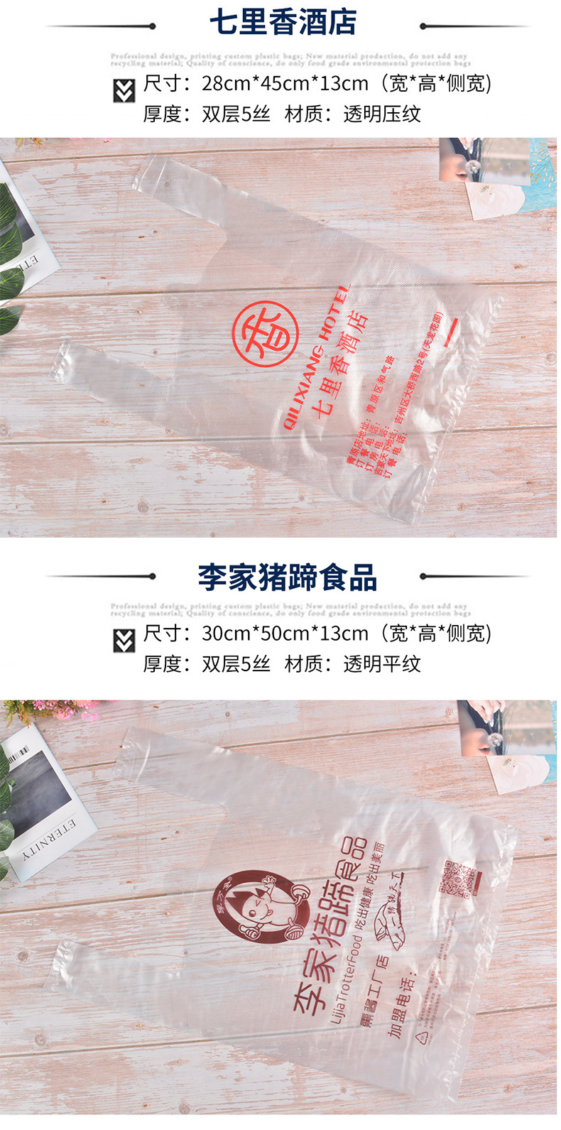 비닐 봉투 맞춤형 비닐 핸드백 조끼 가방 맞춤형 로고 인쇄 PE 네 손가락 버클 핸드백 제조 업체스토어 가기