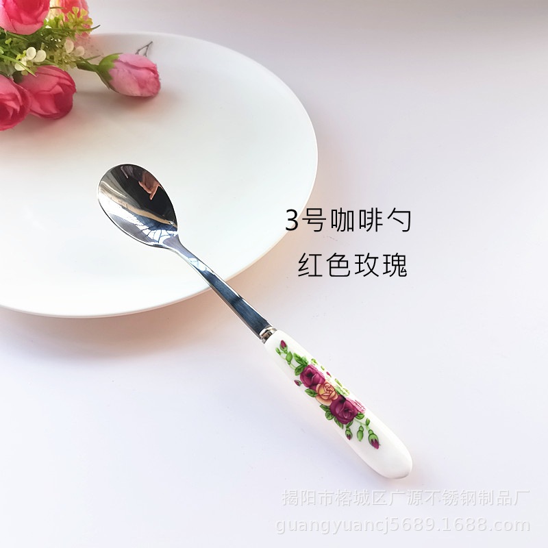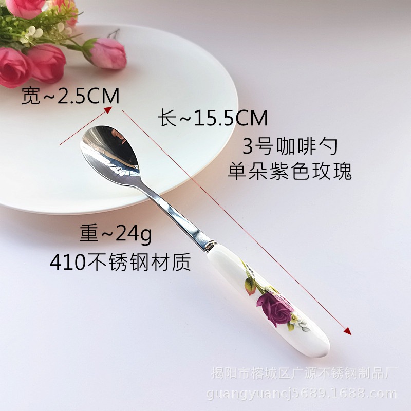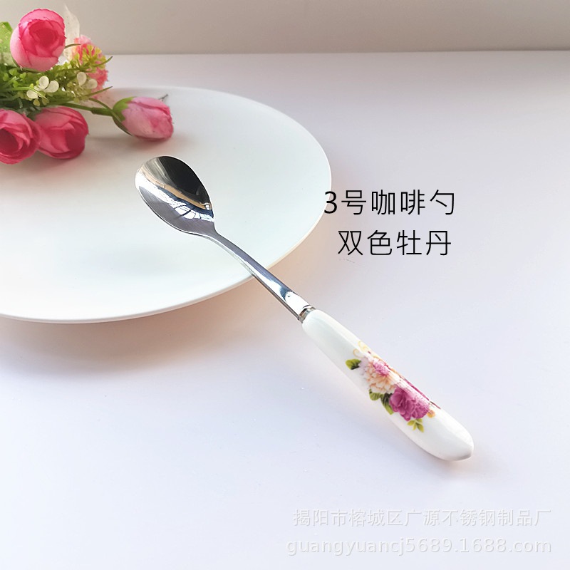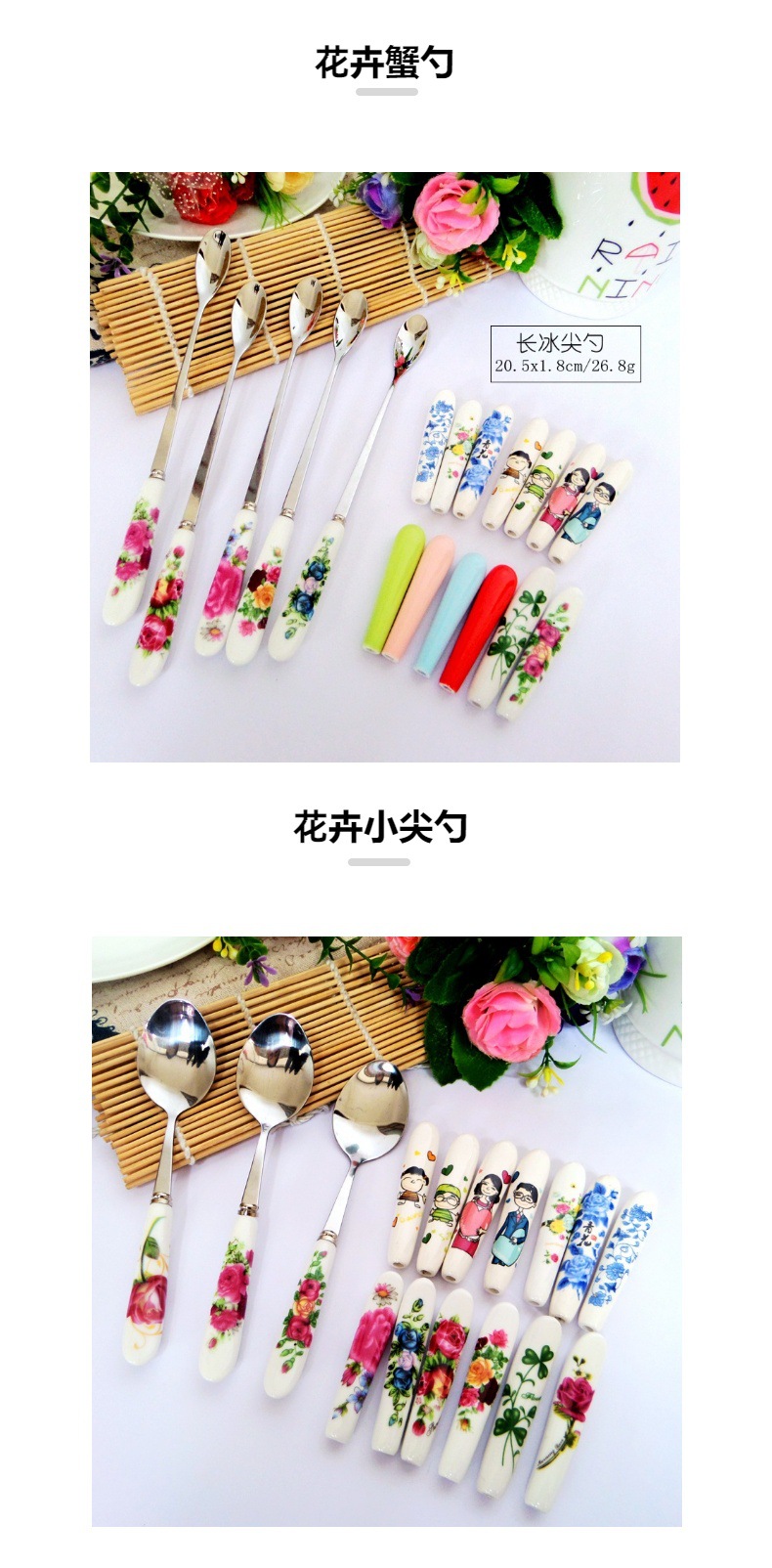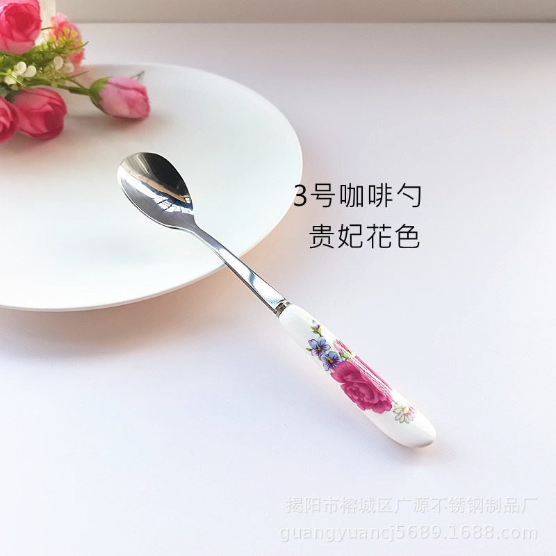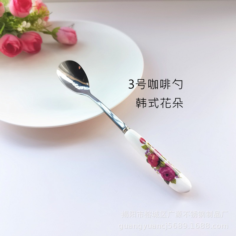 창의적인 스테인리스 식기 한국식 세라믹 꽃무늬 커피 스푼 양념 제비집 디저트 스푼 도매
