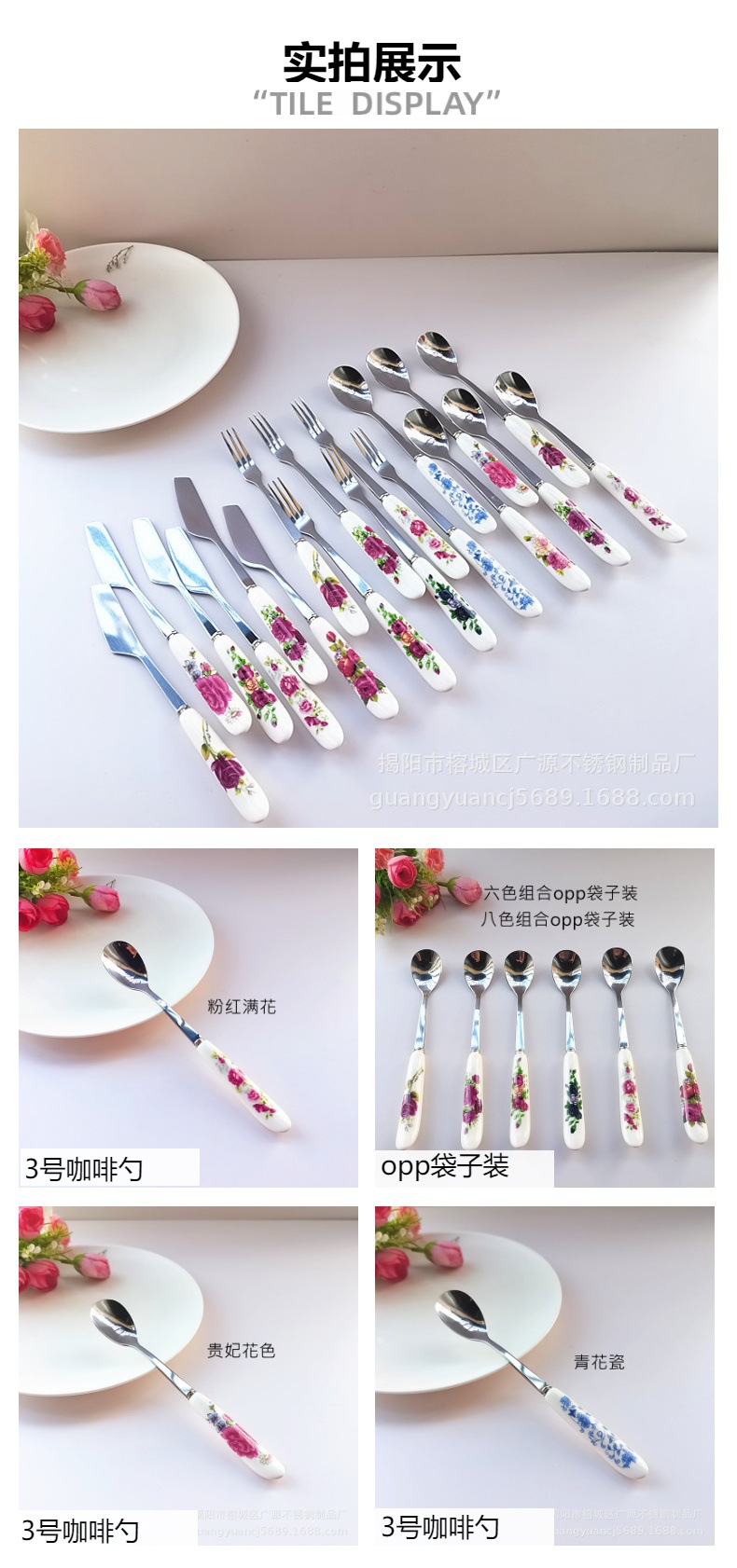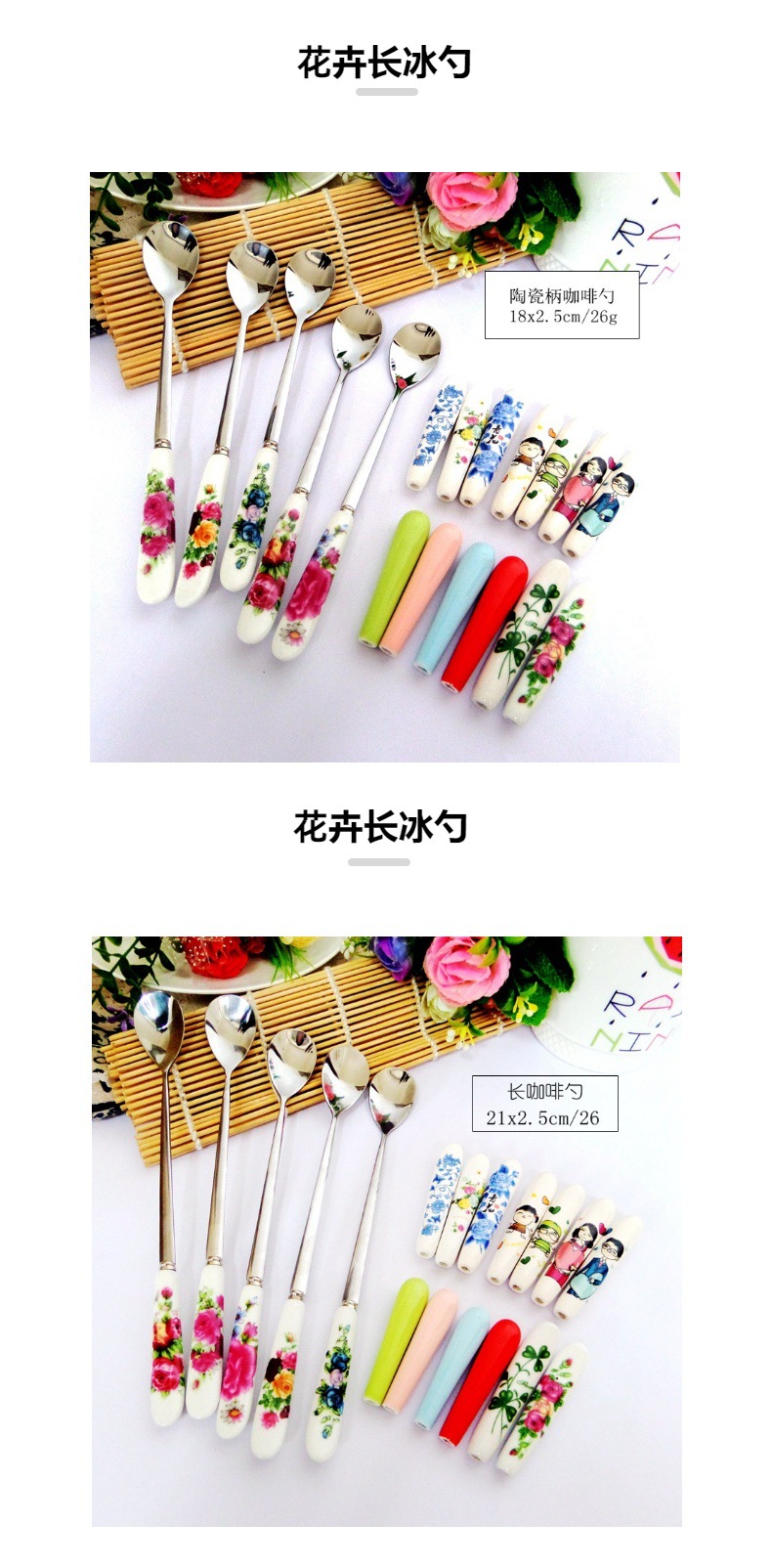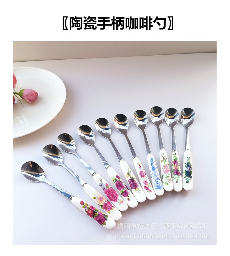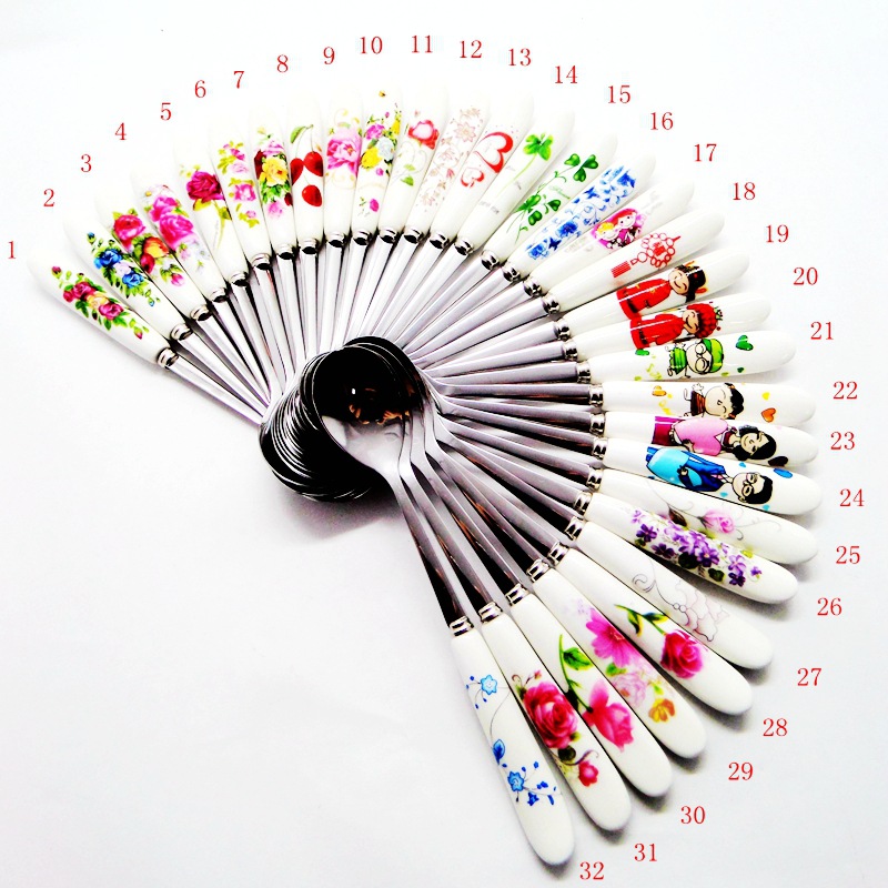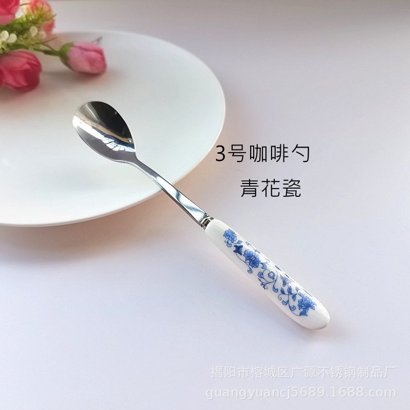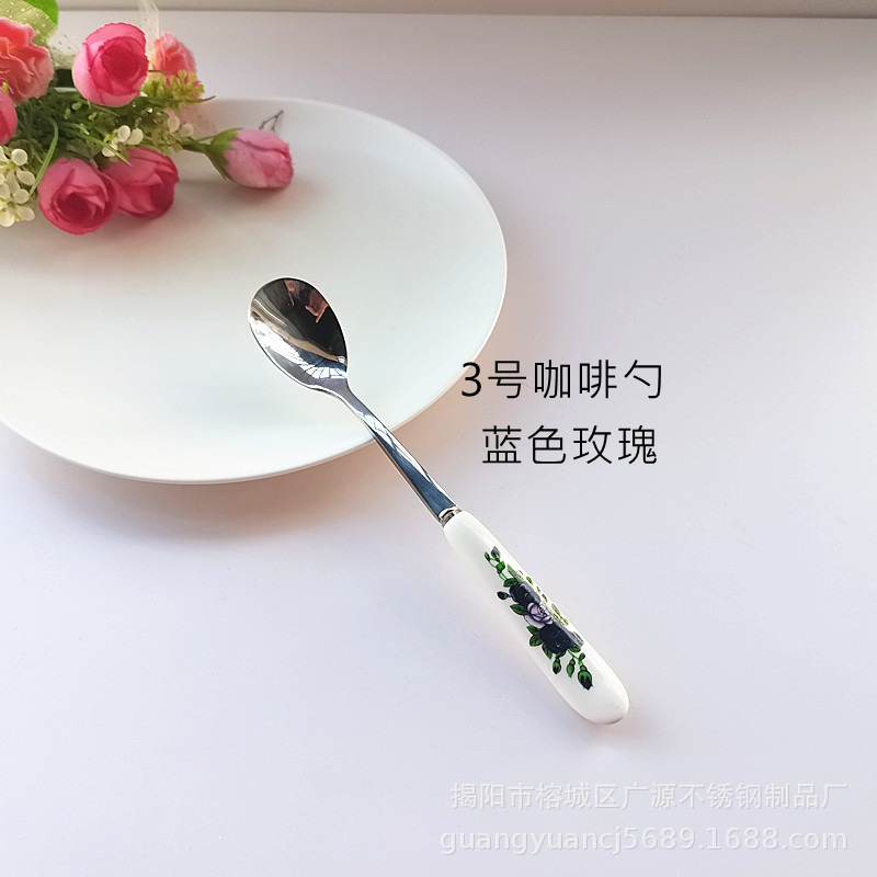 창의적인 스테인리스 식기 한국식 세라믹 꽃무늬 커피 스푼 양념 제비집 디저트 스푼 도매
