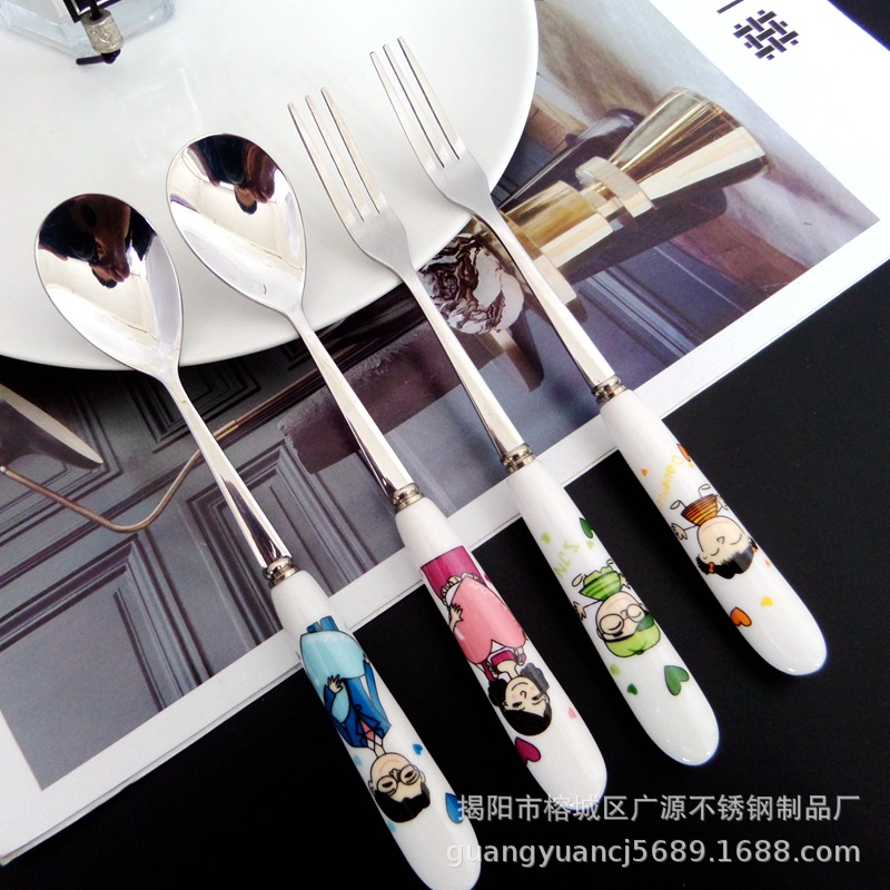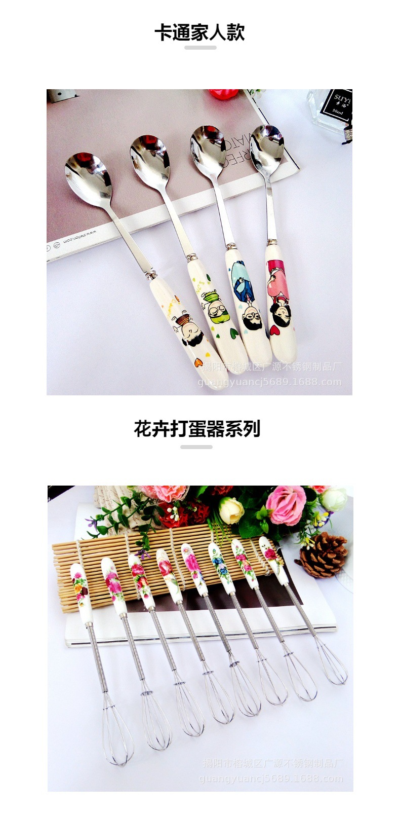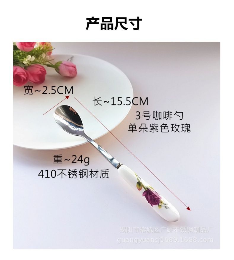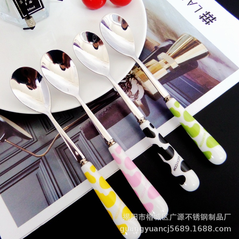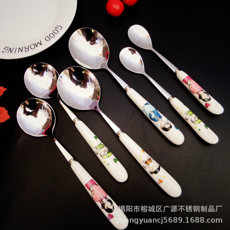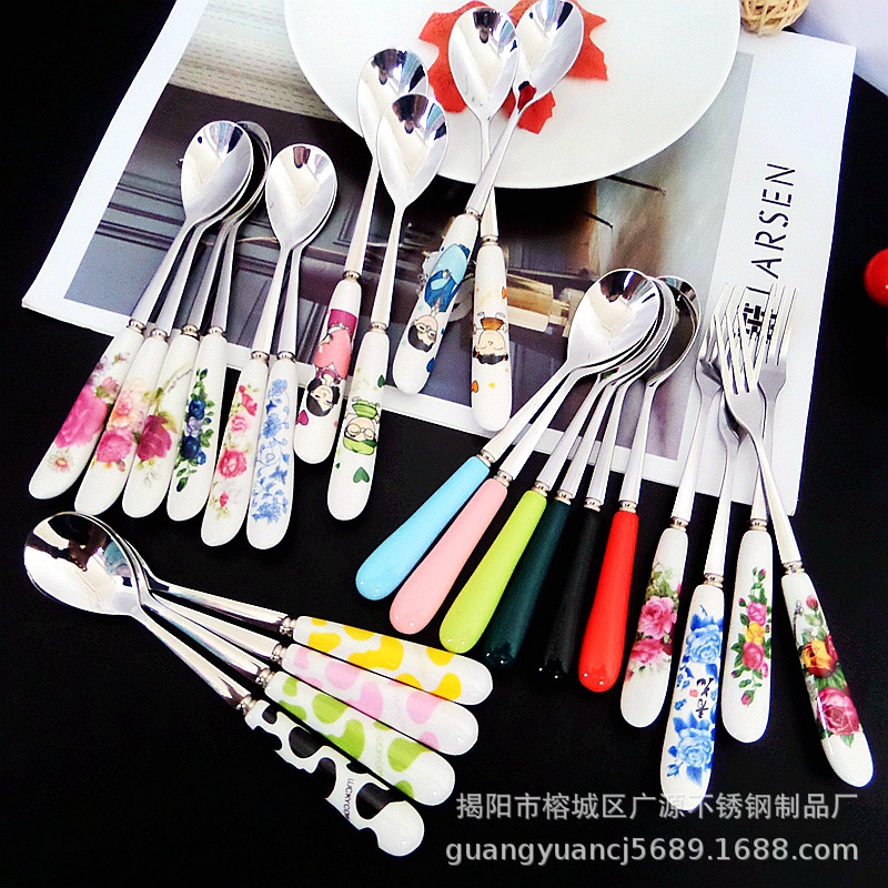 창의적인 스테인리스 식기 한국식 세라믹 꽃무늬 커피 스푼 양념 제비집 디저트 스푼 도매