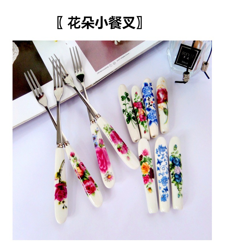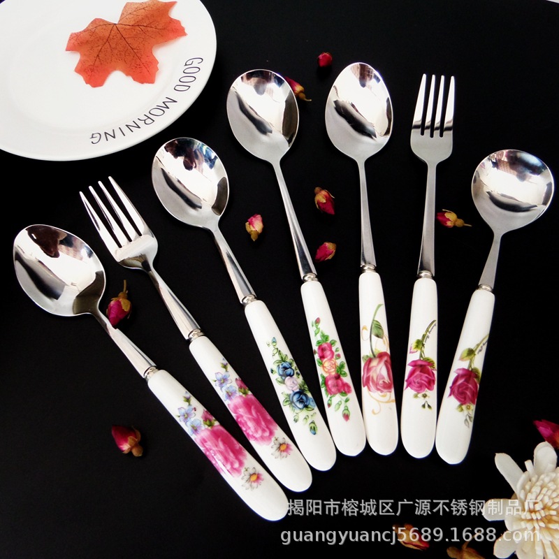 창의적인 스테인리스 식기 한국식 세라믹 꽃무늬 커피 스푼 양념 제비집 디저트 스푼 도매스토어 가기