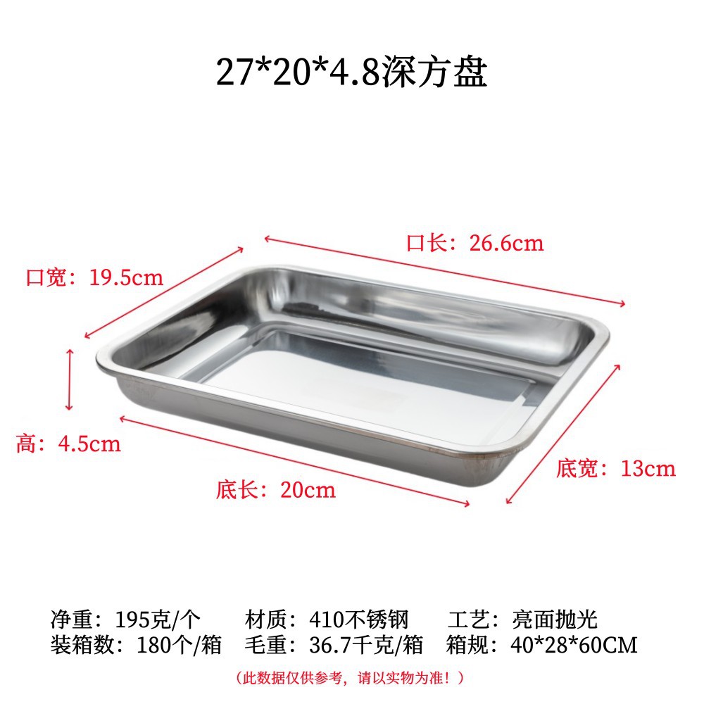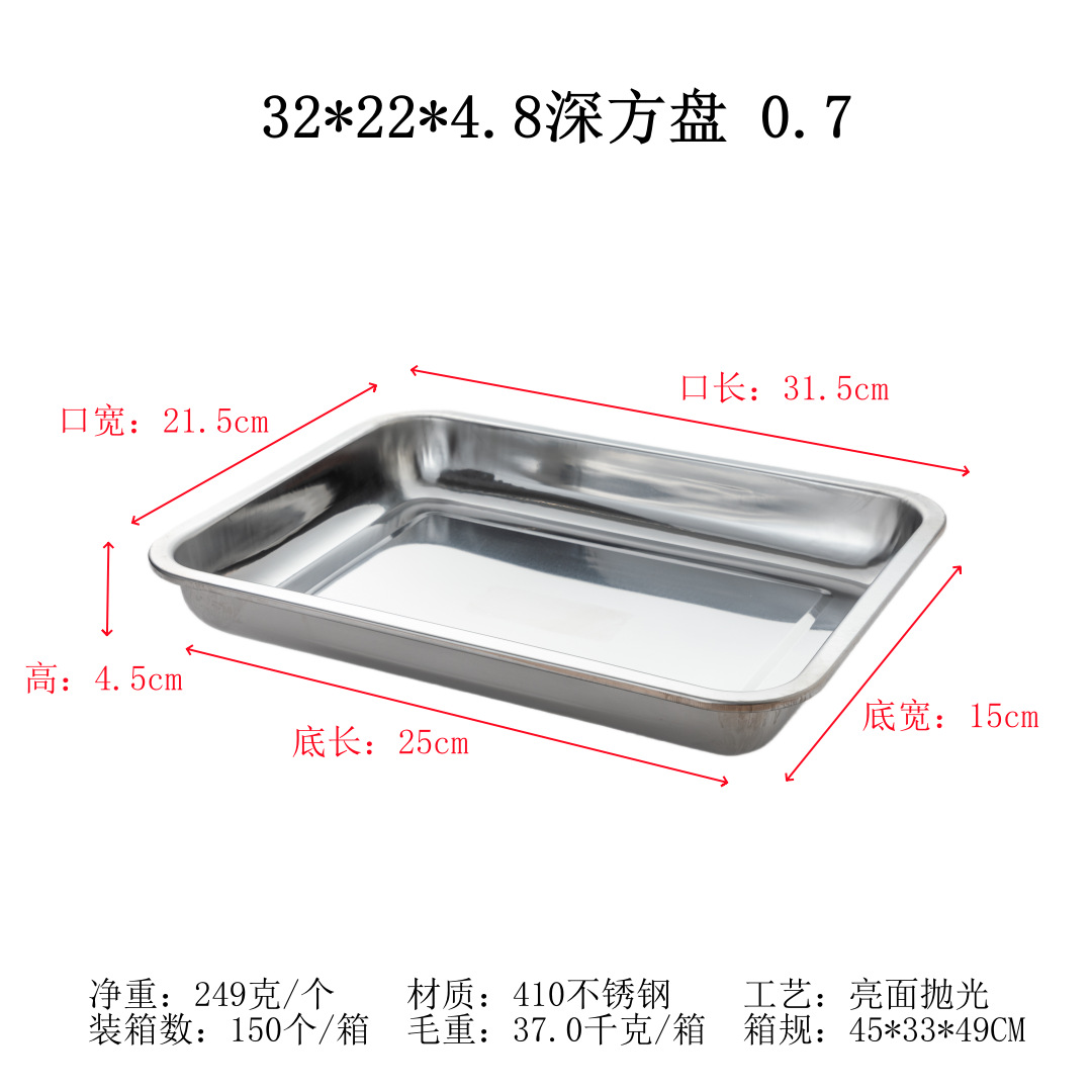 스테인레스 스틸 사각 접시 0.7 두꺼운 깊은 스테인레스 스틸 디너 플레이트 가정용 트레이 바베큐 접시 찜 접시 밥 접시 물스토어 가기