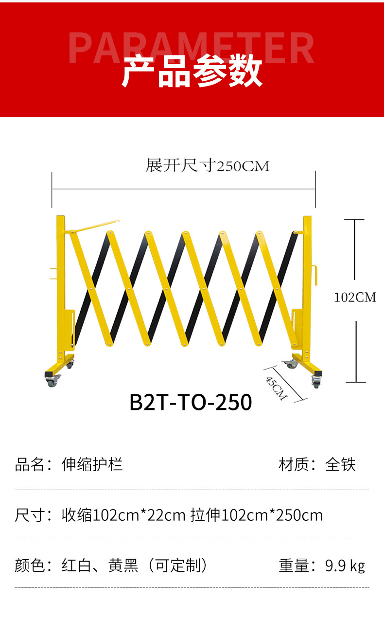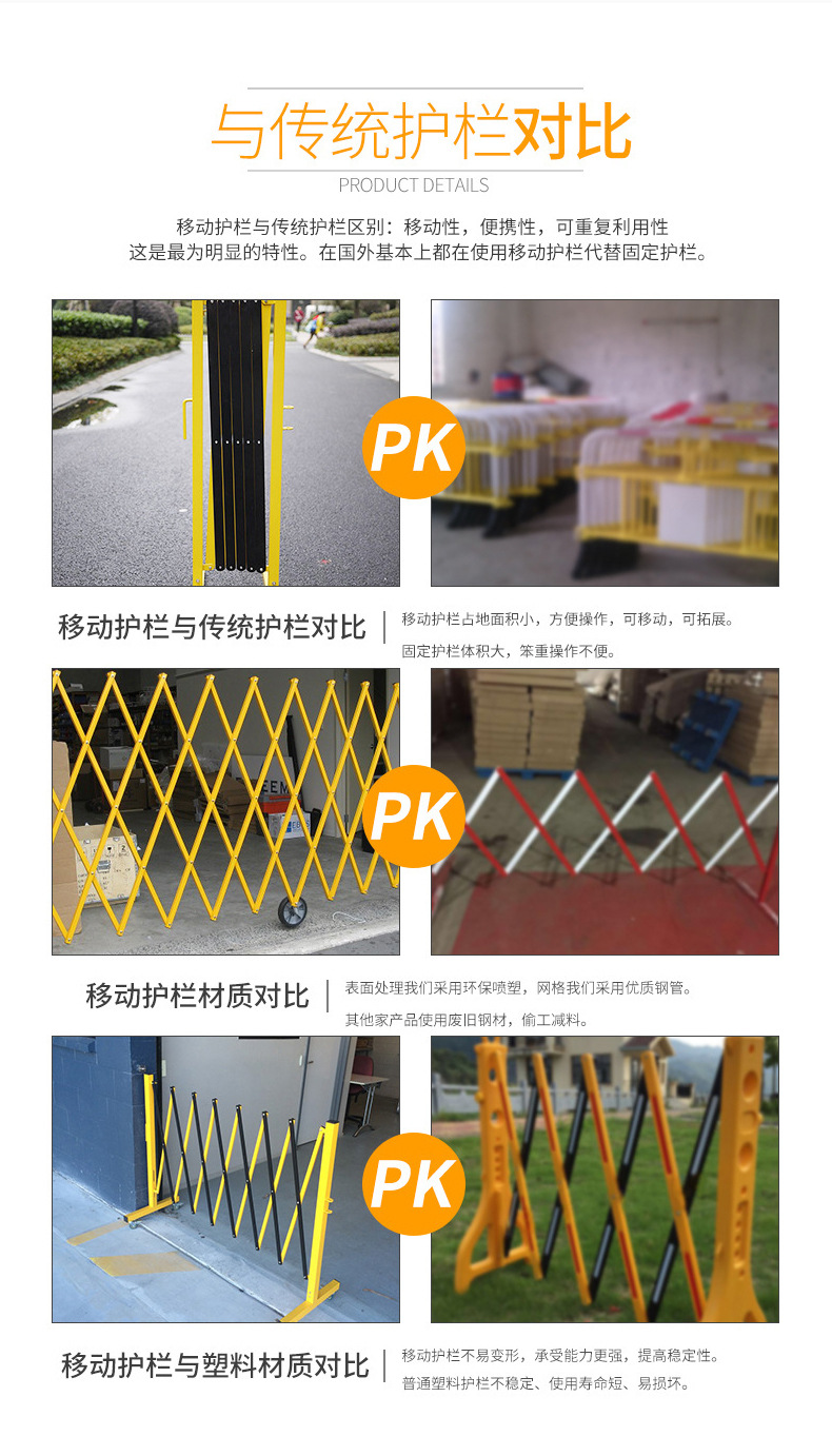 조정 가능한 모바일 가드 레일 텔레스코픽 울타리 휴대용 모바일 보안 보호 가드 레일 야외 임시 격리 레일스토어 가기