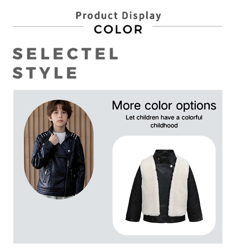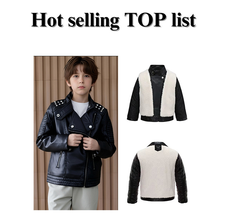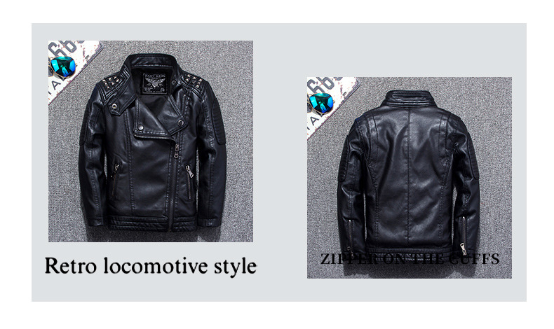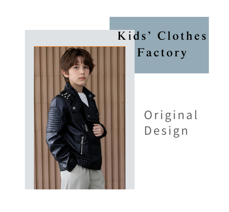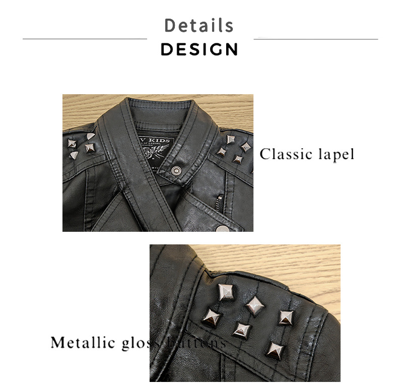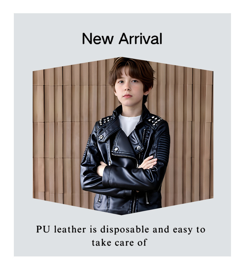 어린이용 가죽 자켓, 리벳 디자인 PU 가죽 자켓, 봄 가을 신상품, 한국 스타일 슬림핏, 해외 무역 인기 상품, 재고 있음, 도매