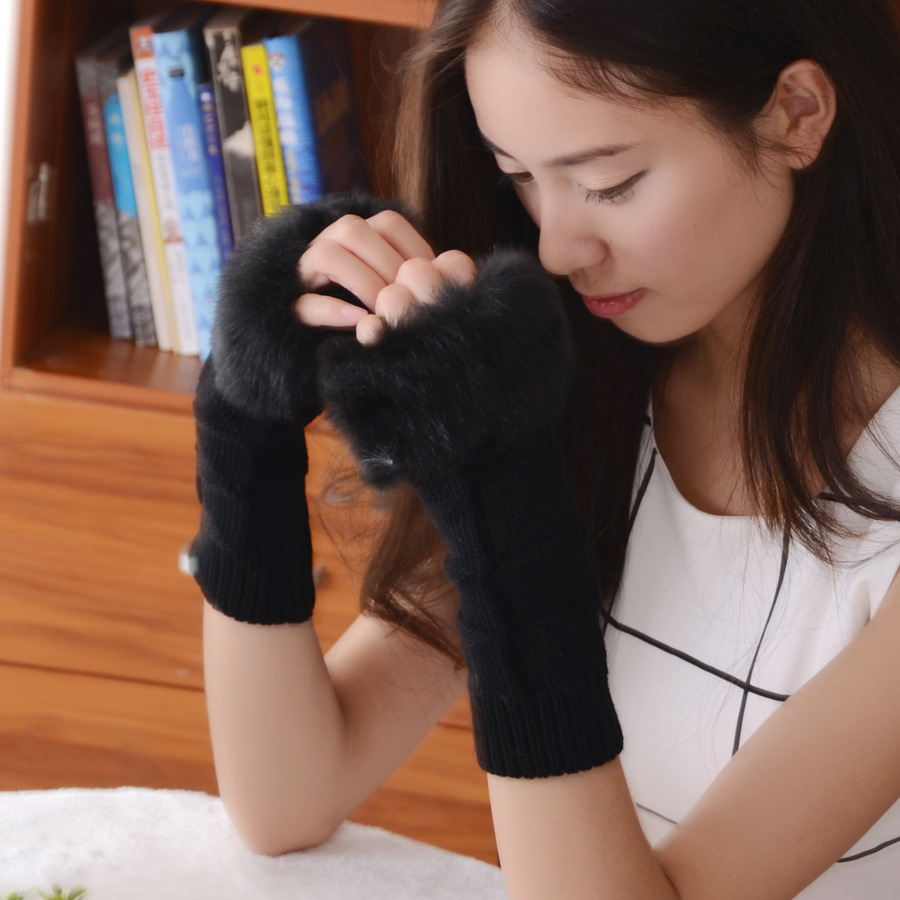 모조 토끼 머리 장갑 겨울 따뜻한 니트 장갑 여성용 반 손가락 장갑 미드 롱 트라이앵글 트위스트 장갑