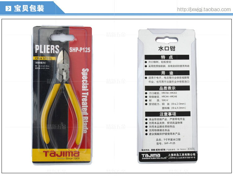 Tajima tajima 전자 물 펜치 SHP-P125 플랫 펜치 5 인치 라인 플라스틱 펜치 비스듬한 절단 펜치 합금스토어 가기