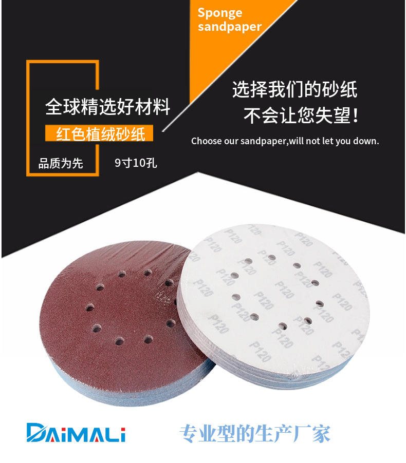 9 인치 10 홀 벽 샌딩 사포 225mm 몰려 사포 퍼티 재 연마 도매 사포 제조 업체스토어 가기