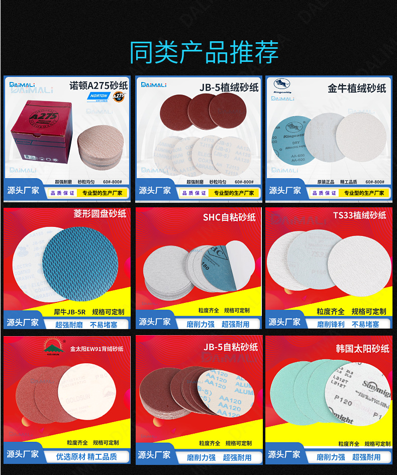 5 인치 JB-5 자체 접착 사포 시트 제조업체 125mm 부드러운 천베이스 양면 접착 에머리 천 TJ113 디스크 사포 시트스토어 가기