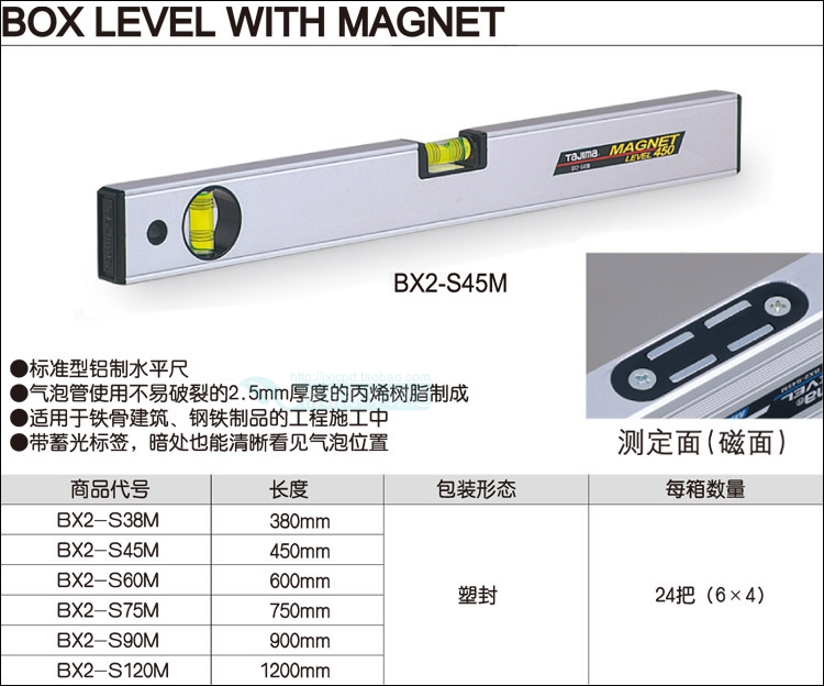다지마 도구 일본 자기 BX2 높은 정밀도 알루미늄 합금 레벨 380-1200mm 측정 수준