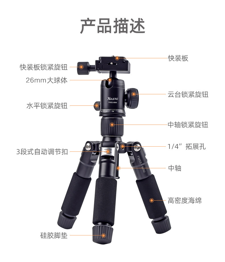 Xilotu 미니 데스크탑 삼각대 경량 휴대용 피코 SLR 카메라 등반 건물 삼각대 휴대 전화 라이브 방송 스탠드