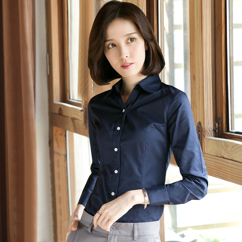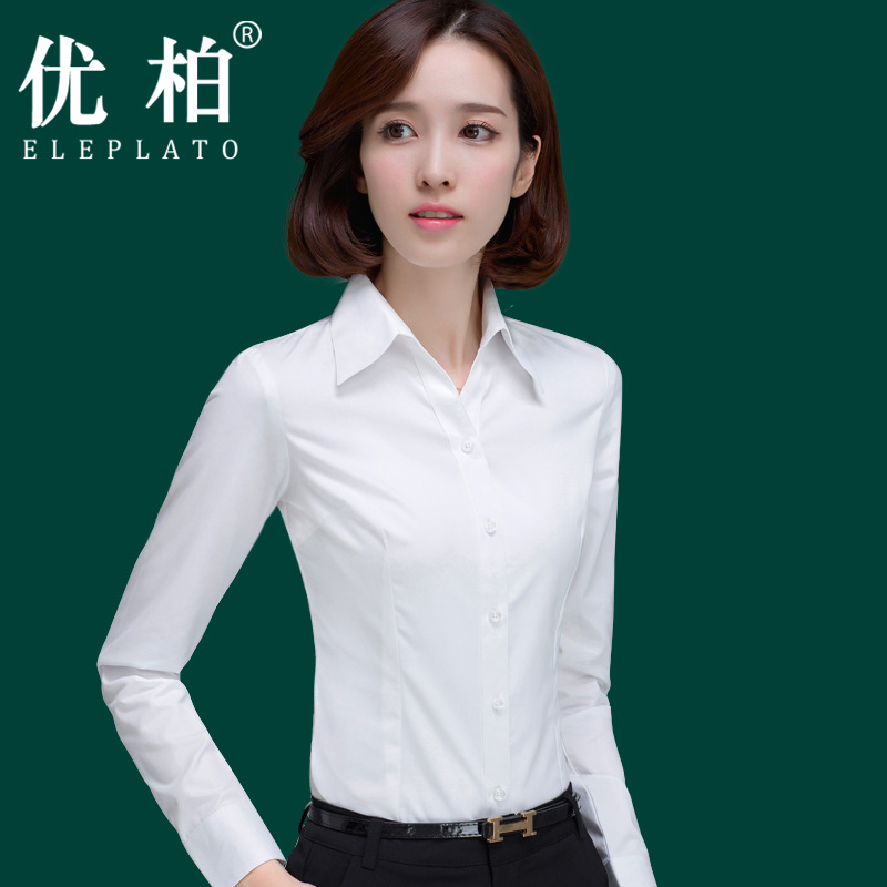 유보 프로페셔널 셔츠 여성 긴팔 V넥 정장 작업복 슬림핏 면 인터뷰 셔츠 화이트 셔츠 OL 여성복 가을스토어 가기