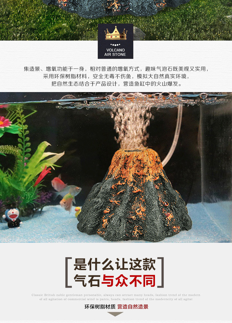 备注:亲 这款火山石常用来当做造景使用 连接氧气泵气管气石 ,会呈现气泡效果哦~~