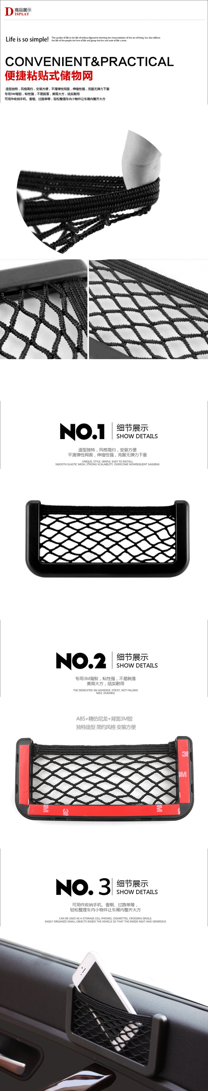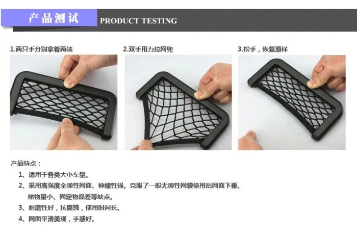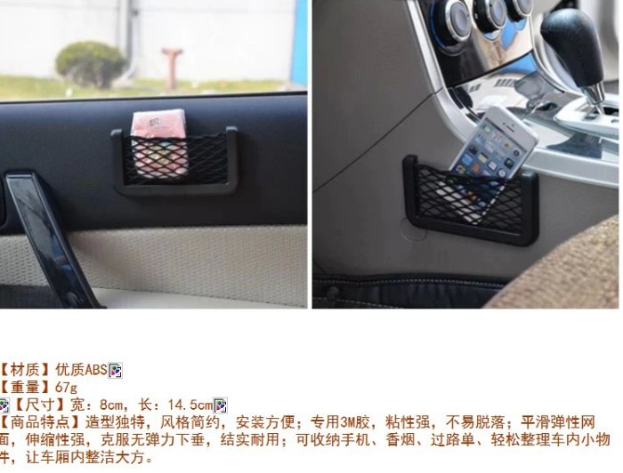 2.由于网兜安装的位置不尽相同,不同的车材料也不一样,购买前必须自行确认可以正常安装和使用