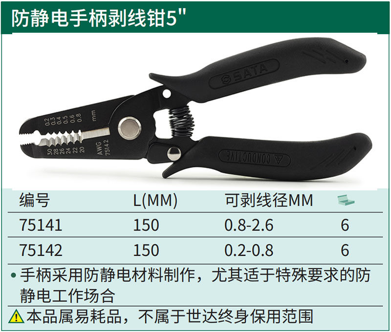 Sata/Shida 도구 정전기 방지 핸들 와이어 스트리퍼 다기능 와이어 스트리퍼 75141 75142스토어 가기