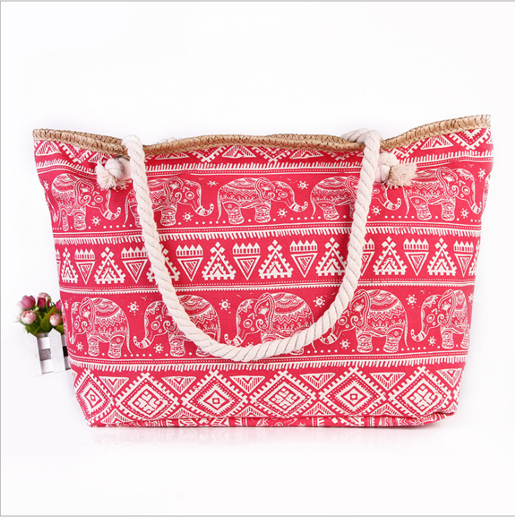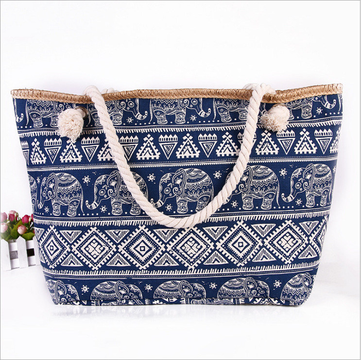 新款民族风布艺女包 时尚印花帆布包大容量出游单肩包 沙滩包