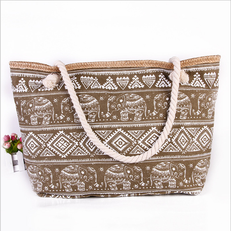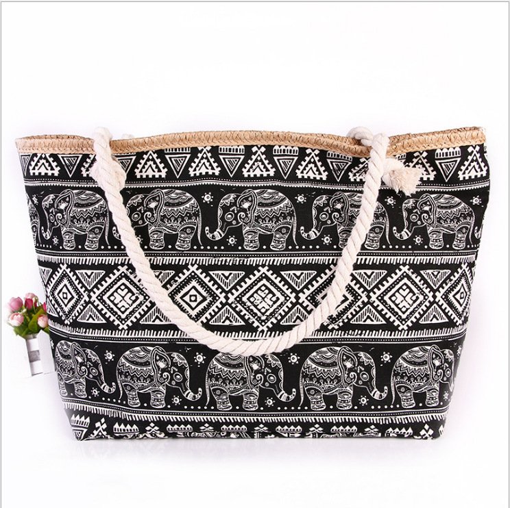 새로운 에스닉 스타일 여성 가방 패션 인쇄 캔버스 가방 대용량 여행 숄더백 비치 백
