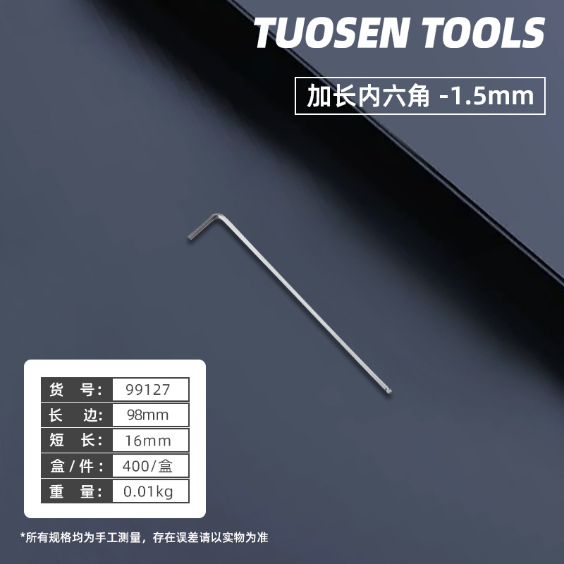 • 99127, 길어진 육각형 소켓 1.5mm,20/가방 400/상자, 가방 제거 없음, 용공, 0.01KG *