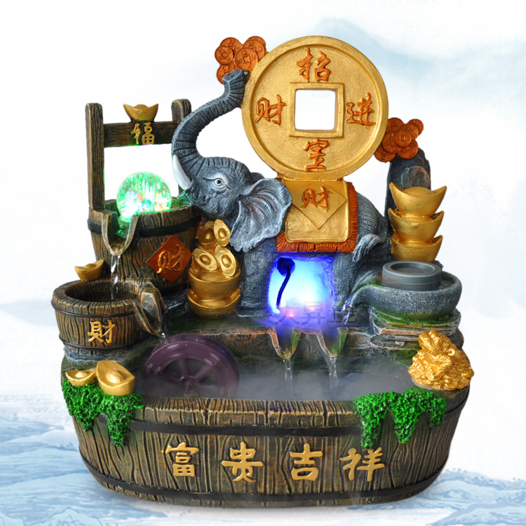 공장 공급 실내 분수 판촉 선물 코끼리 흐르는 물 공예 수지 분수 가정 장식 장식품스토어 가기