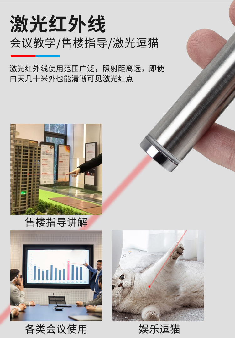 휴대용 레이저 적외선 손전등 플래시 2-in -1 다기능 야외 교체 가능한 No.5 배터리 끈