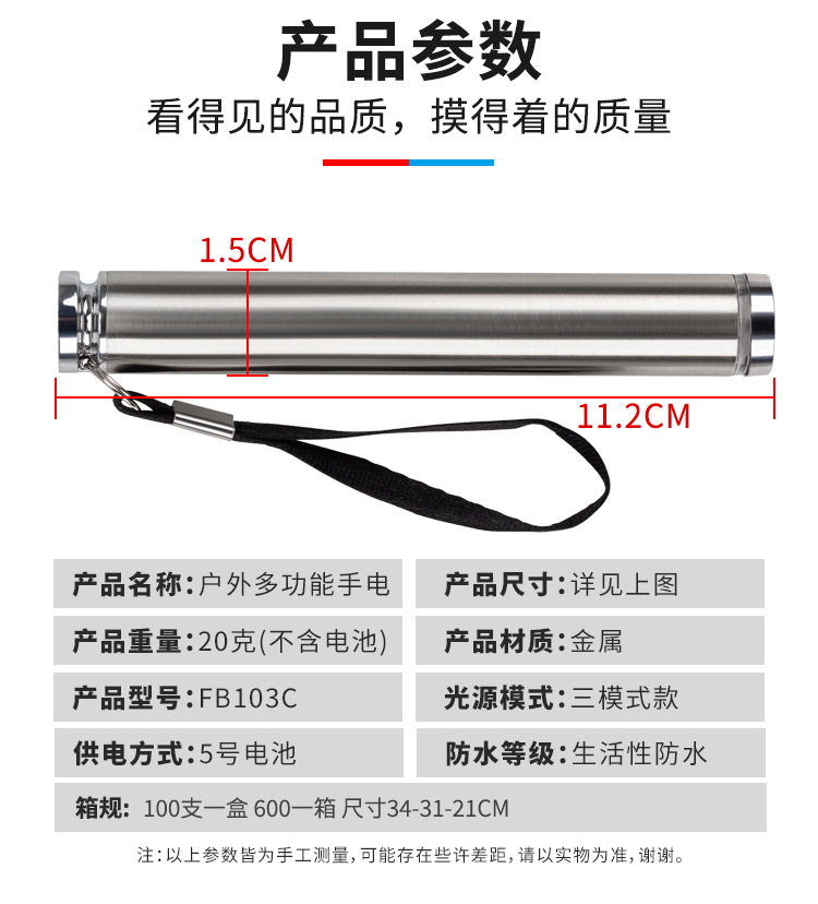 • 2구 (자극광 + 백색 점멸 COB) AA 건전지 (미포함) 최소 주문 수량 50개, 50개 미만 주문 시 유사 모델로 대체 발송됩니다.