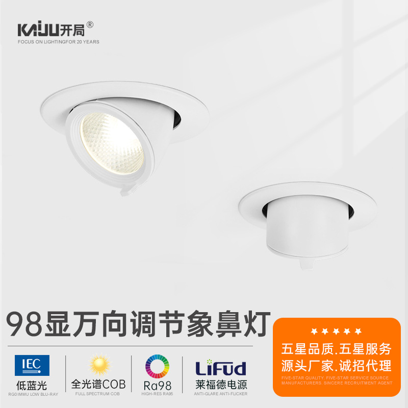고급 LED 코끼리 코 램프 COB 코너 천장 스포트라이트 360 도 회전 황소눈 스포트라이트 공장 콘센트스토어 가기