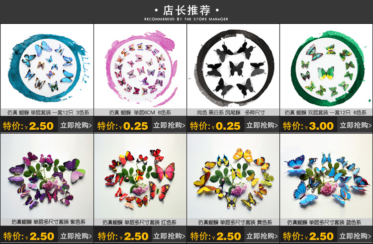 仿真蝴蝶均以真蝴蝶为蓝本,正反有相同的图案.可装饰,造景,把玩.馈赠.极具观赏性.可装饰任何地方.价格低,市场大.有新奇特之卖点.