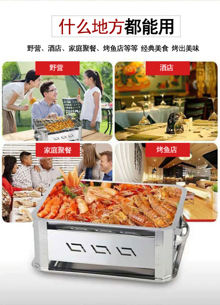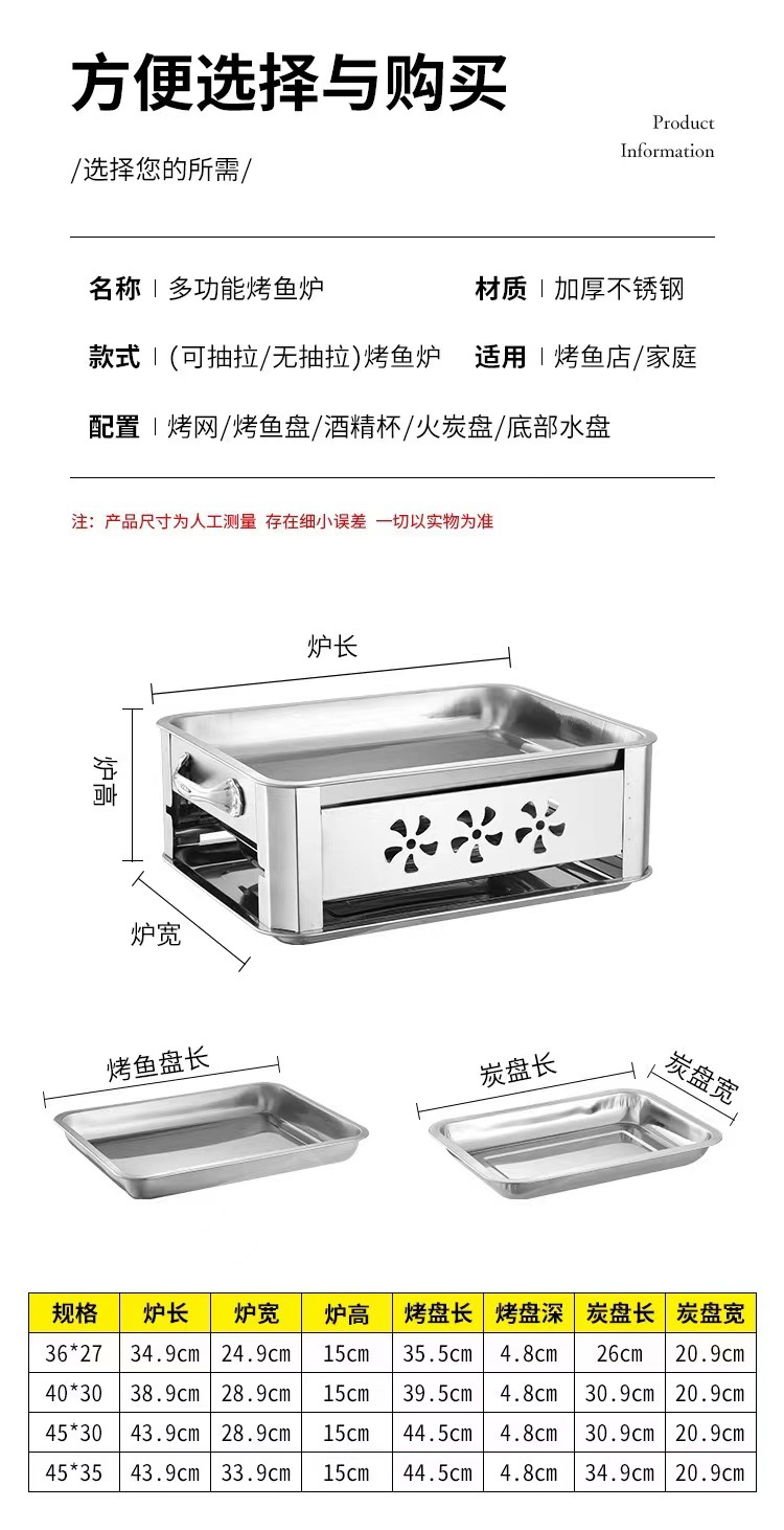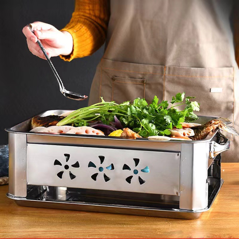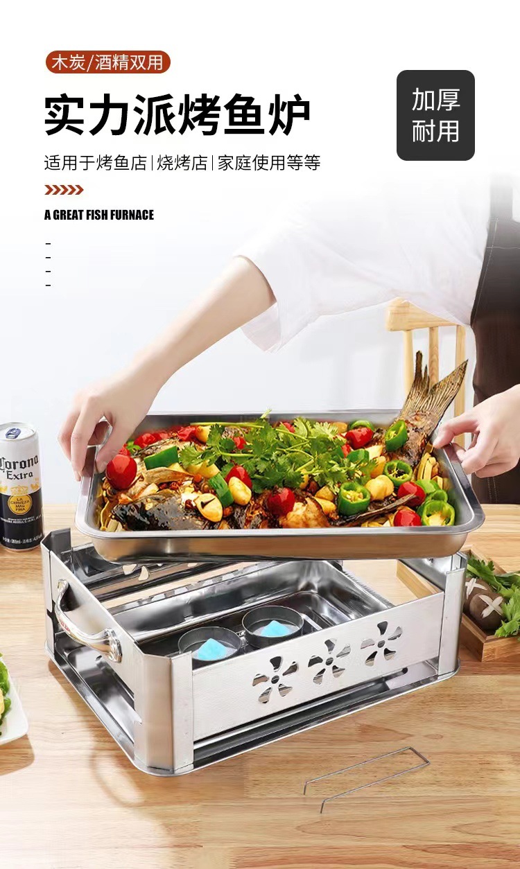 두꺼운 스테인레스 스틸 생선 그릴 오븐 드레이블 및 환기 숯 알코올 이중 목적 바베큐 오븐 상업용 가정용스토어 가기