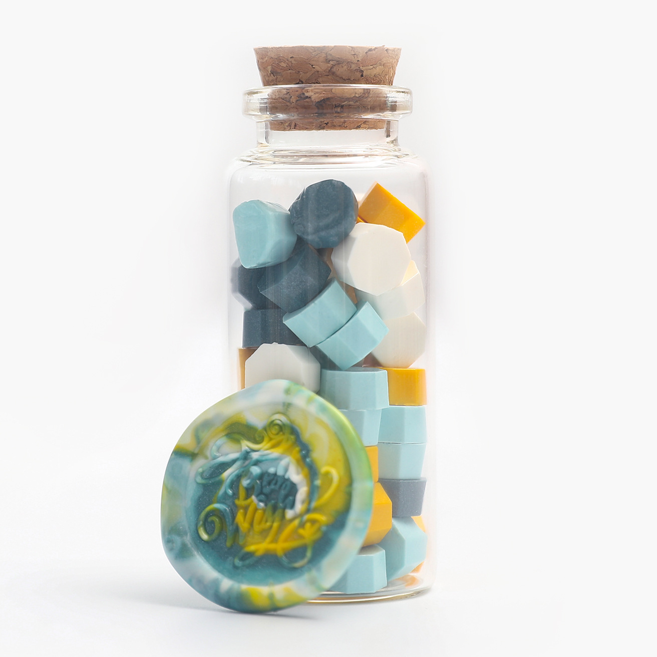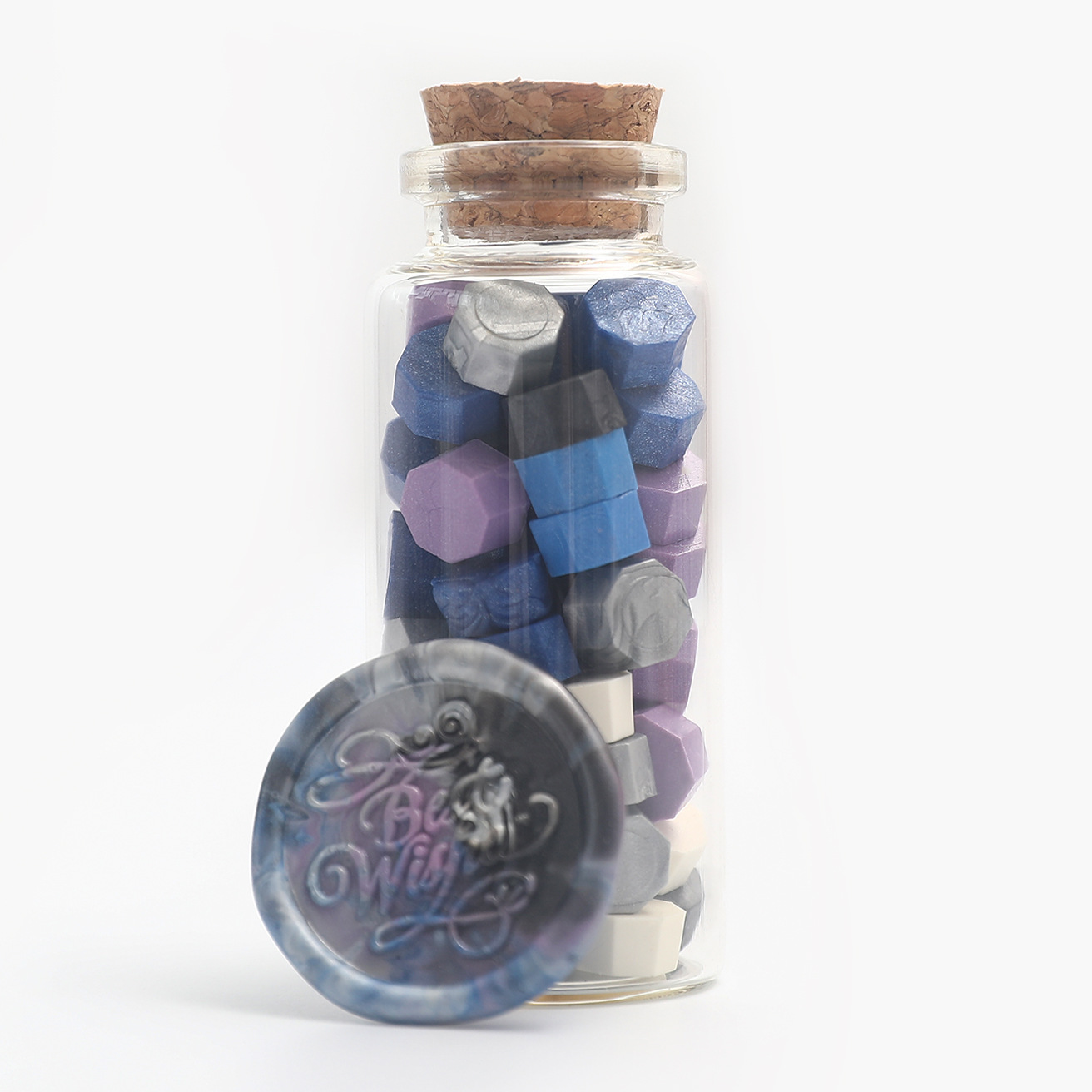 火漆印章全套现货火漆蜡粒八边形透明炫彩混色袋装蜡便宜批发章头