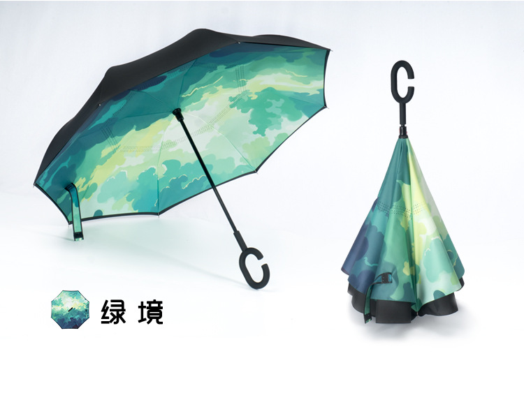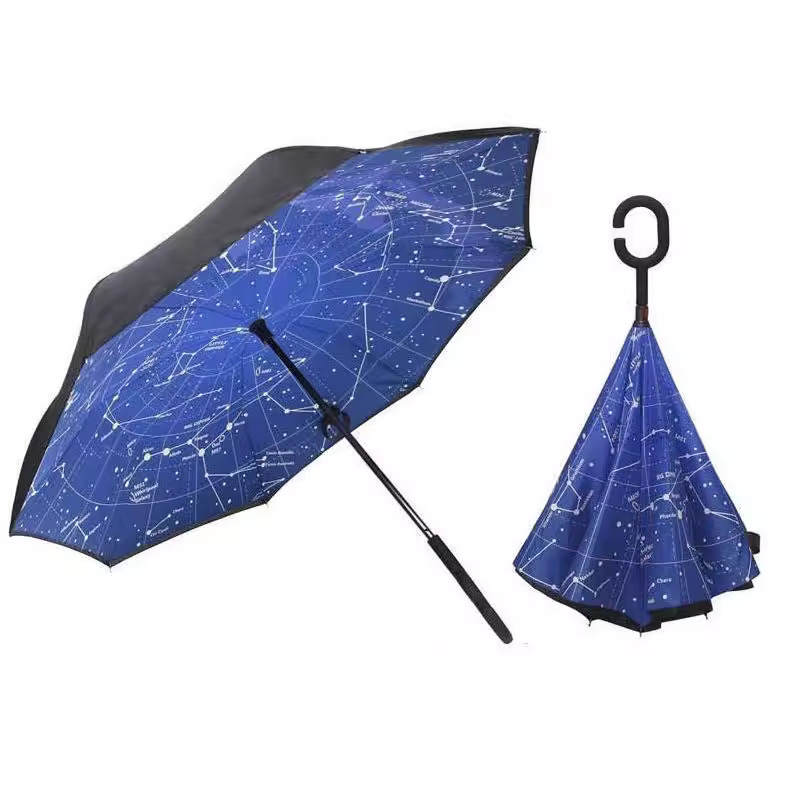 우산 부티크 혁신적인 역방향 우산 더블 레이어 태양 우산 양산 맑은 우산 C 자형 크리 에이 티브 역방향 뼈 우산 더블 레이어 우산