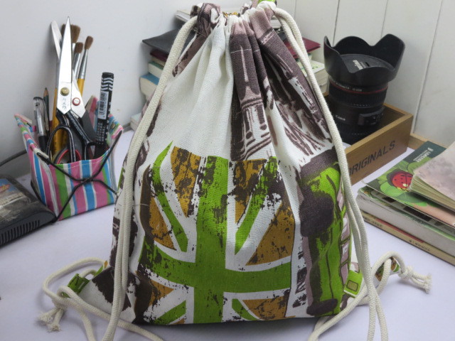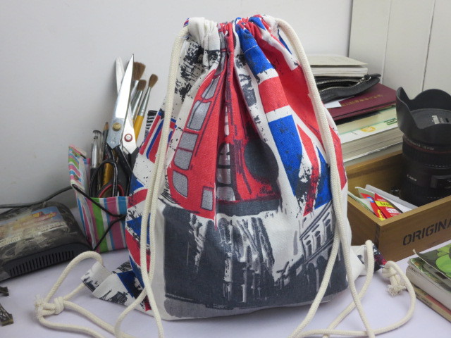 런던 인쇄 드로우 스트링 천 가방 뒤 거트 귀여운 여성 배낭 캐주얼 천 가방 어깨 가방 공장 도매스토어 가기