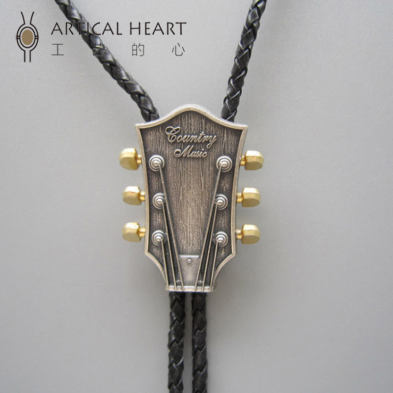 【产品名称】:原创镀银音乐主题老吉他波洛领带《吉他头》