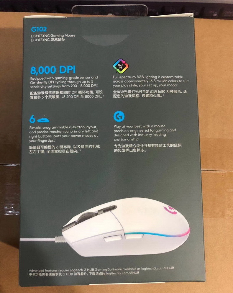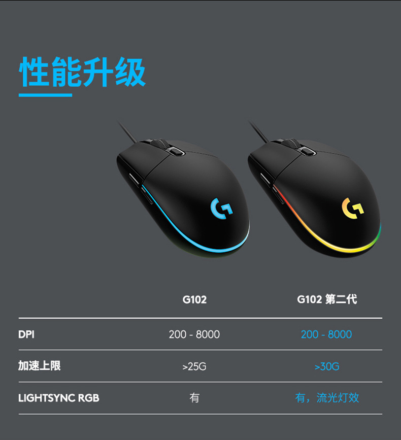 로지텍 G102 2세대 유선 게이밍 마우스 e스포츠 맥로 기능 LOL 경쟁용 RGB 라이트