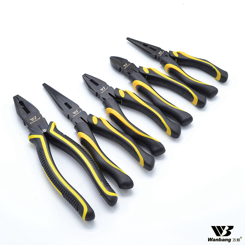 공장 도매 완방 8 인치 6 인치 리본 시리즈 핸들 전기 영동 블랙 스틸 와이어 뾰족한 입 타이거 플라이어