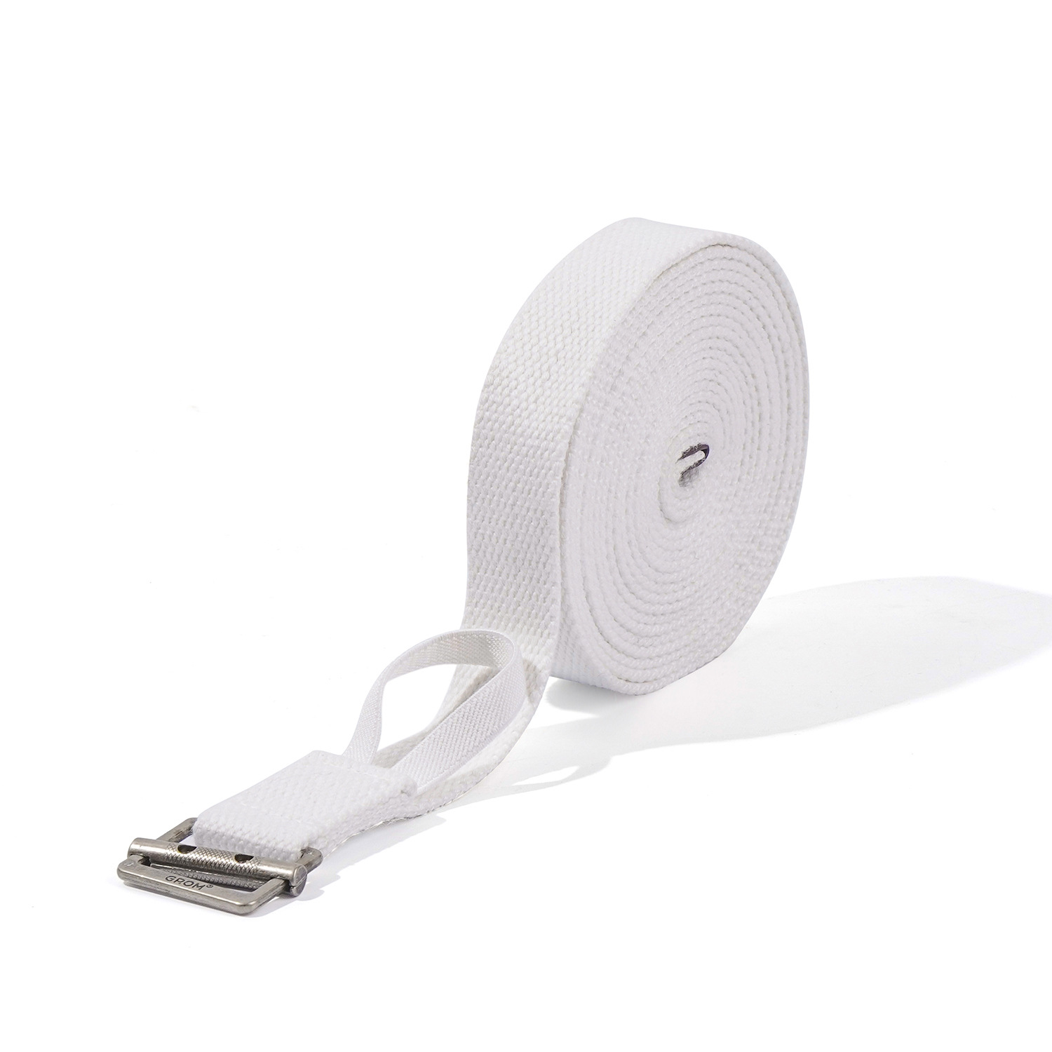 伸展带一般又称为是瑜珈绳,不具弹性,除可帮助筋骨伸展及延长姿势停留的时间外,还可藉由伸展带仅实地扣住身体,让二隻手可以空出来,做尽情的延展动作。在练习腰部弯度或腿部伸展动作时,可作为提脚或是腰部依靠力之用!