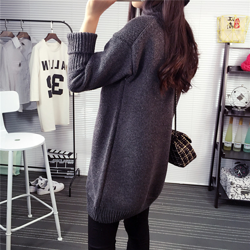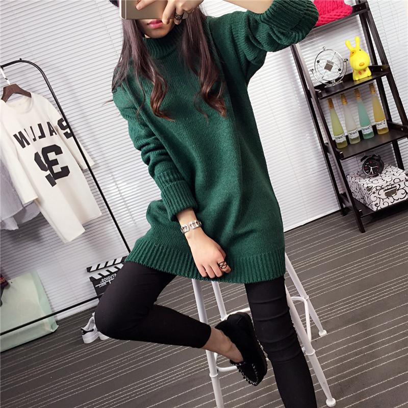 가을과 겨울 새로운 한국식 단색 니트 스웨터 여성용 느슨한 반 터틀넥 중간 길이 두꺼운 여성용 풀오버스토어 가기