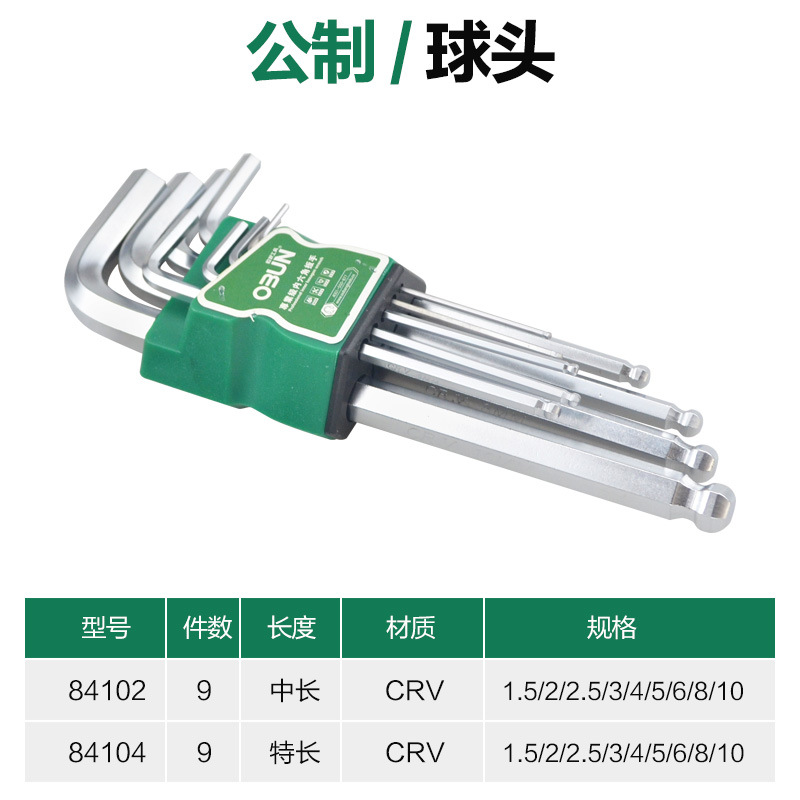 알렌 렌치 세트 볼 헤드 렌치 육각형 매트 L자형 매화 쌀 크롬 바나듐 스틸 육각형 미터법 9 종 세트