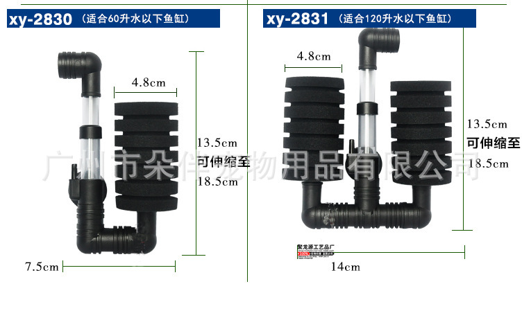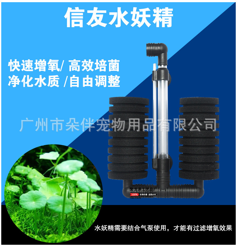 本系列产品,为挂式滤器,吸附于鱼缸壁,采用环保的高级海棉作为滤材,与气泵联用,达到增氧与过滤的双重果功效。