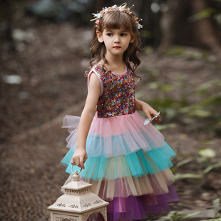소녀 원피스 원피스 큰 어린이 거즈 스커트의 한국어 버전 새로운 어린이 나비 조끼 공주 치마 머리카락의 세대