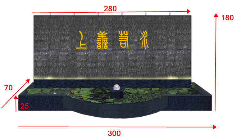 【备       注】:水墙可刻上个人需要的字体和logo,欢迎订做,常用于公司企业、酒店园林等场所的名称、形象定做。