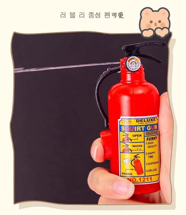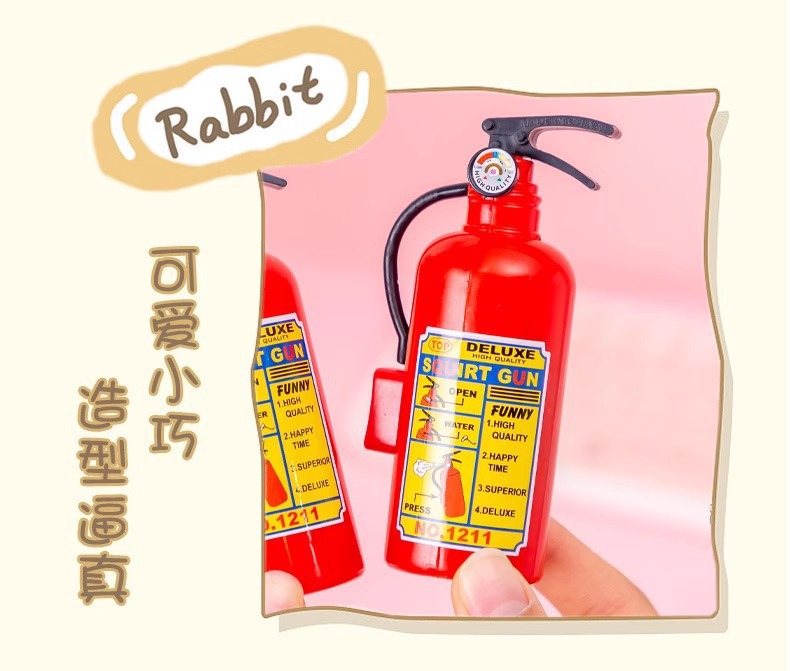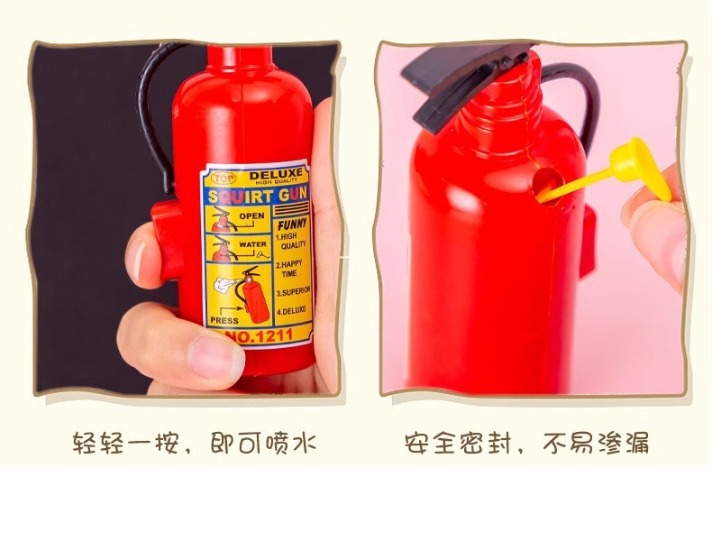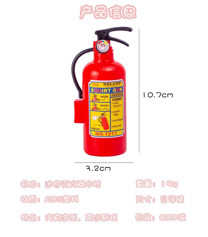 本产品是一款创意产品,是一款外形是灭火器,实际是一款水枪,让您的孩子从小懂得防火安全意识!同时也是一款整人产品!