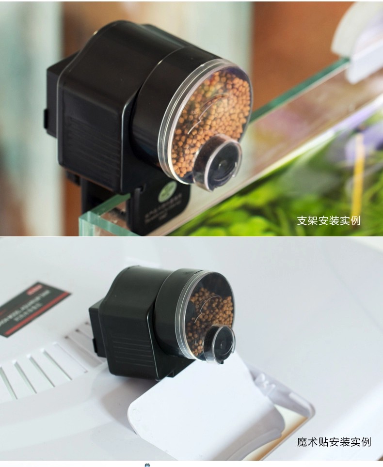 可根据鱼缸的形式,喂食器有两种安装方式。
